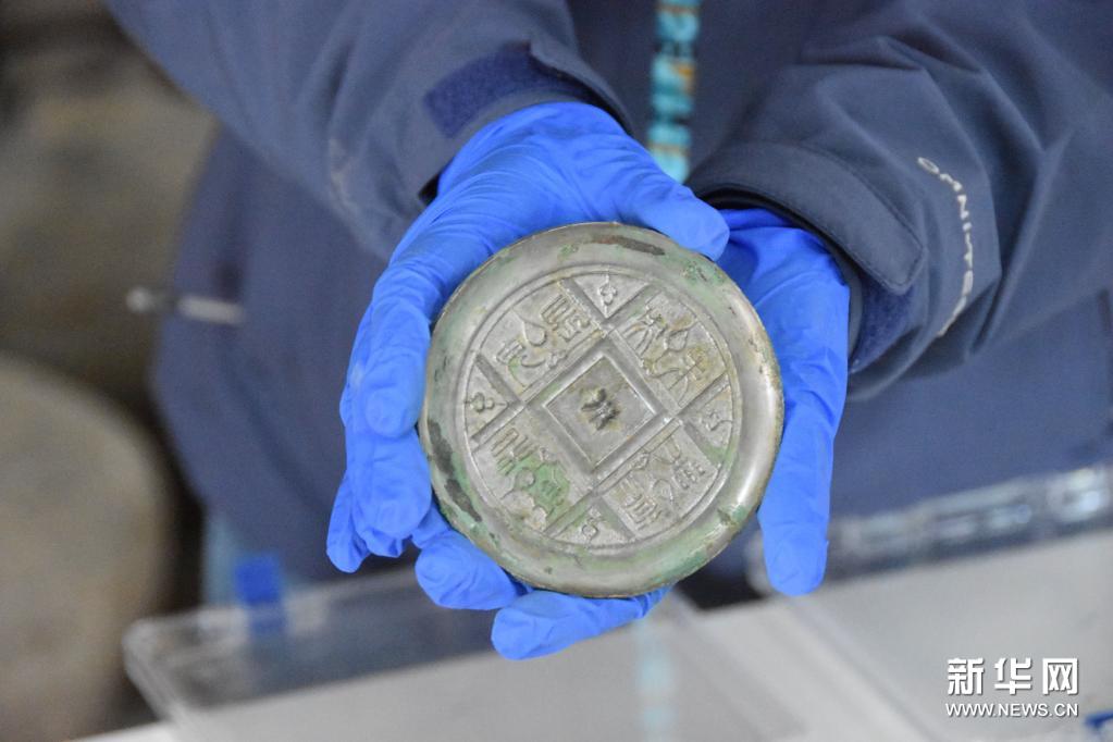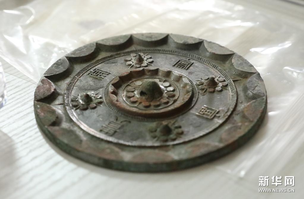 這是帶有“家常富貴”銘文的銅鏡(4月13日攝)。新華社發(陳逸達攝)