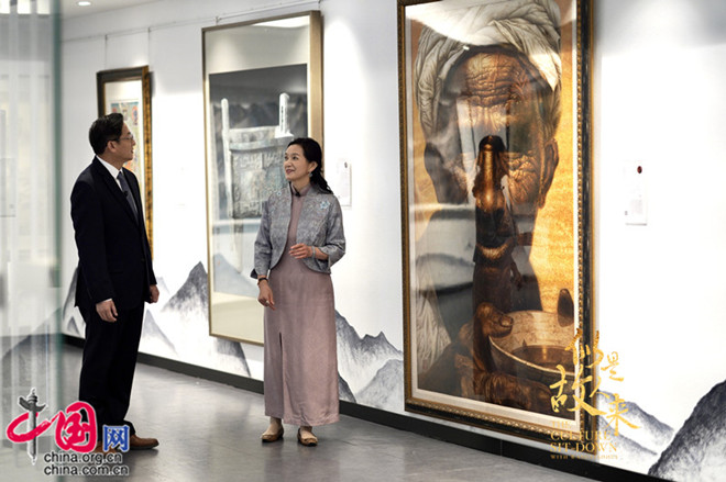 王曉輝與姚建萍參觀中國刺繡藝術館。中國網記者 胡俊 攝