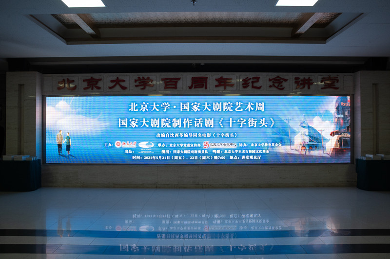 中國網訊 5月21日,由北京大學、國家大劇院聯合策劃的“北京大學·國家大劇院藝術周”正式拉開帷幕,由國家大劇院創排的話劇《十字街頭》作為本次藝術周活動的首場演出,在北京大學百周年紀念講堂上演。