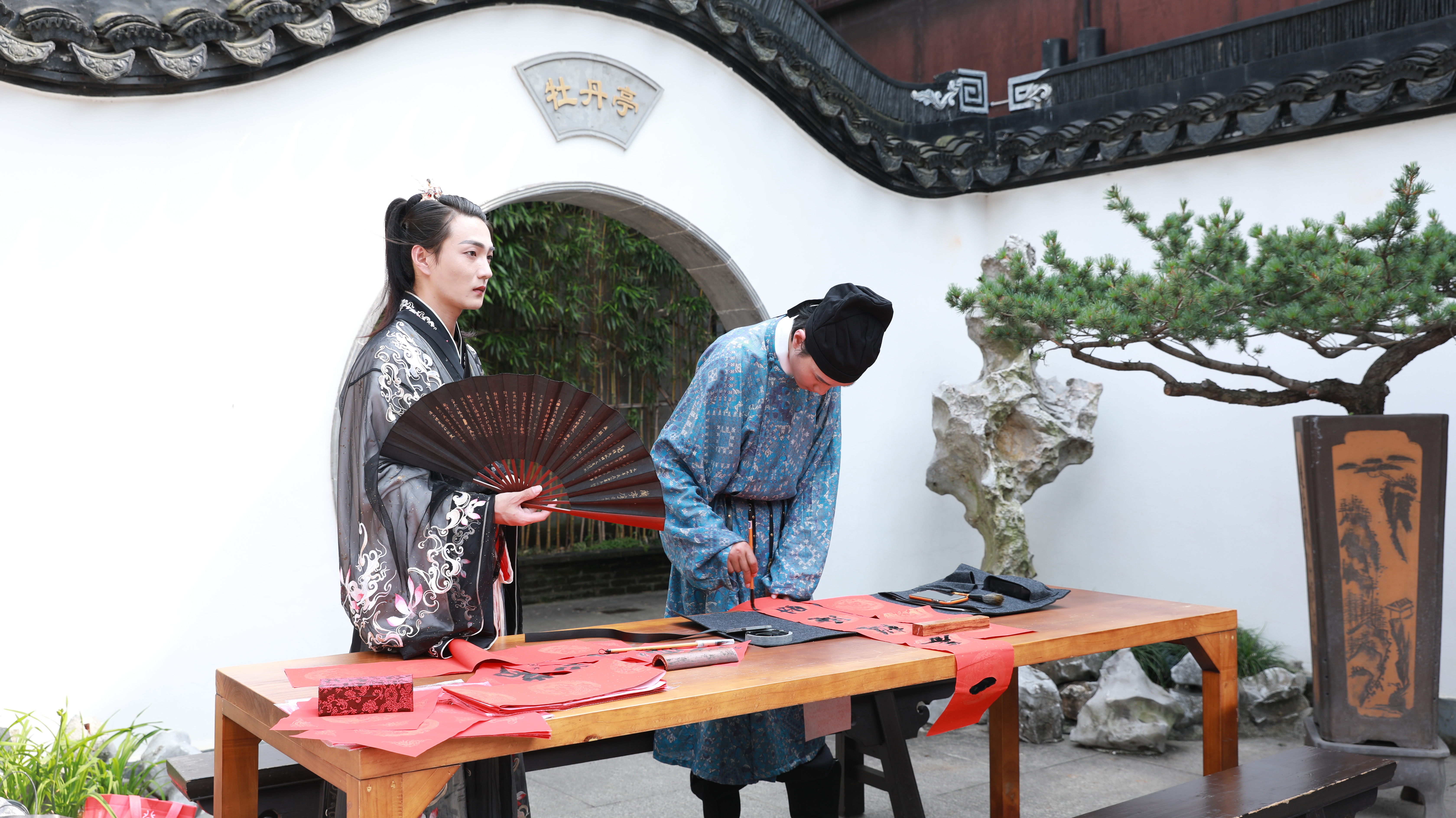在周莊古戲臺,以“昆曲”為韻,吟詩作聯。聯贈游人,互動之間,人文與水鄉生活的躍然而出。