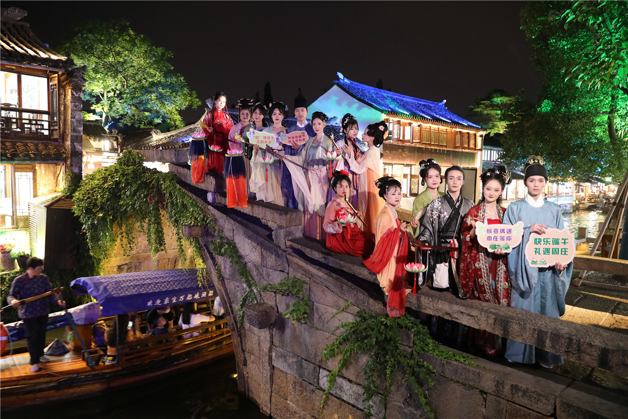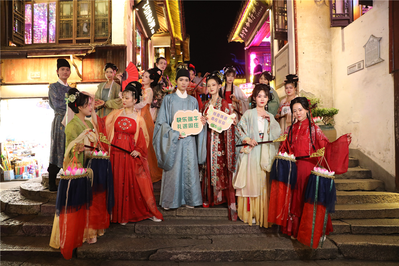 作為擁有千年歷史的江南水鄉古鎮,周莊與國風文化有著天然的匹配度,當漢服文化風潮與周莊相遇在端午佳節,游人的腳步、漢服愛好者的種草地,全部匯集于0.47平方公里的原鄉,周莊魅力指數攀升。