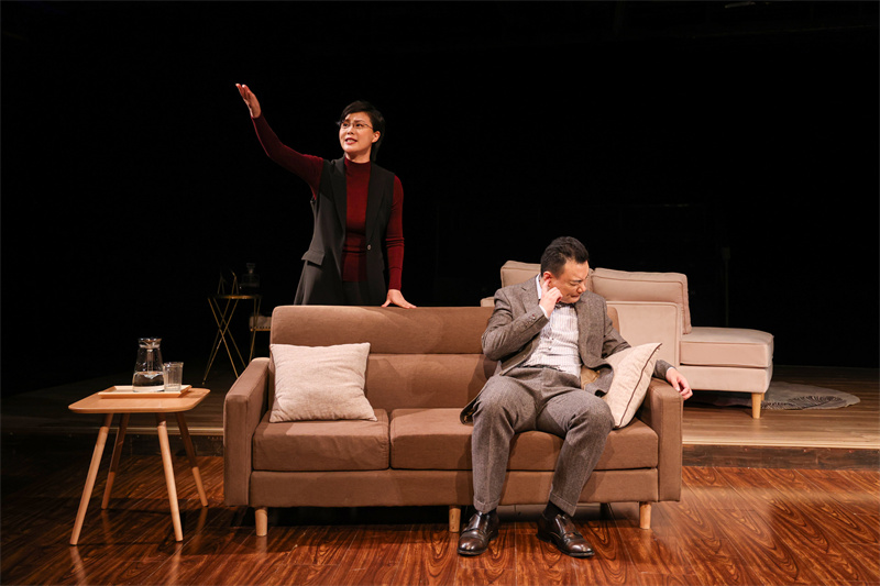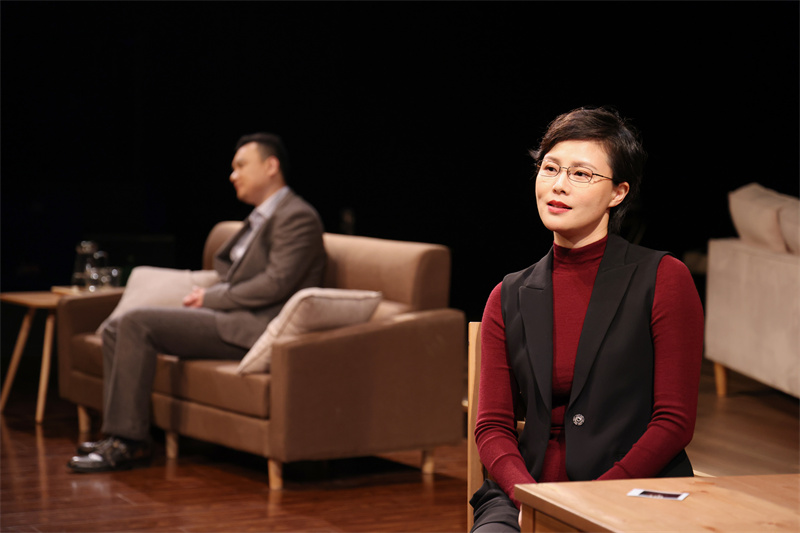 雖然北京人藝小劇場舞臺上情感題材作品并不少見,但《性情男女》無疑是其中獨具風格的一部。該劇以現代生活的視角揭示出日常表象之下的復雜沖突,通過人與人之間的關系去透視生活中的變與不變,以及人面對選擇該如何去承擔等問題?!翱梢哉f這部現代戲的好處是離我們都很近,我們理解了,所以能去更好地豐富它?!痹趯а蓓n清看來,這部戲不止是在講一個故事,而是在講人與人之間的關系,“關系本身就是復雜的,每一種關系背后都能延伸開一個故事,所以這部戲表現的空間很大。同時關系又不是永遠不變的,因為發生了變化,所以人跟人之間的表現方式會不一樣,這也是這部戲非常奇妙好看的地方?!?/p>