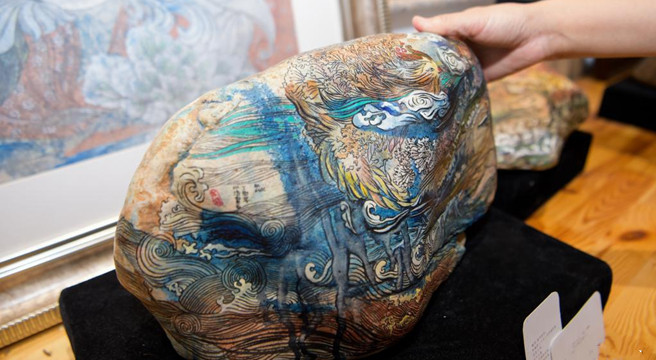 8月14日,觀眾在觀看“棟梁——梁思成誕辰一百二十周年文獻展”中的安濟橋(趙州橋)模型。 新華社記者 陳鐘昊 攝