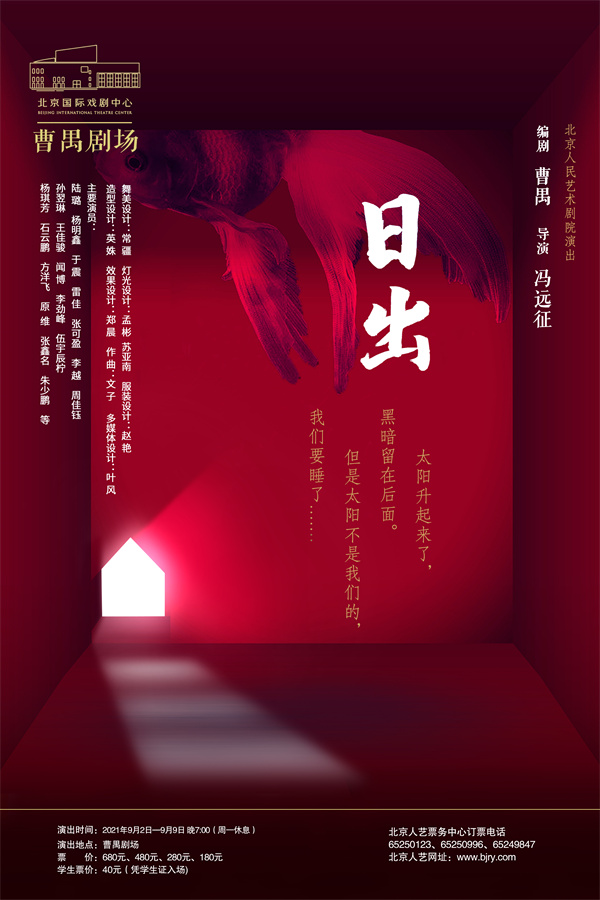 該劇8月24日正式開票,9月2日至9月9日演出7場。9月2日,北京國際戲劇中心曹禺劇場也將首揭面紗,觀眾將看到新劇場、新《日出》與新生代的全新碰撞,感受北京人藝舞臺經典的永恒魅力。