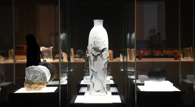 在廣州荔灣區泮塘五約的法繡工坊,王穎峰展示她完成的法繡飾品(8月20日攝)。新華社記者 鄧華 攝