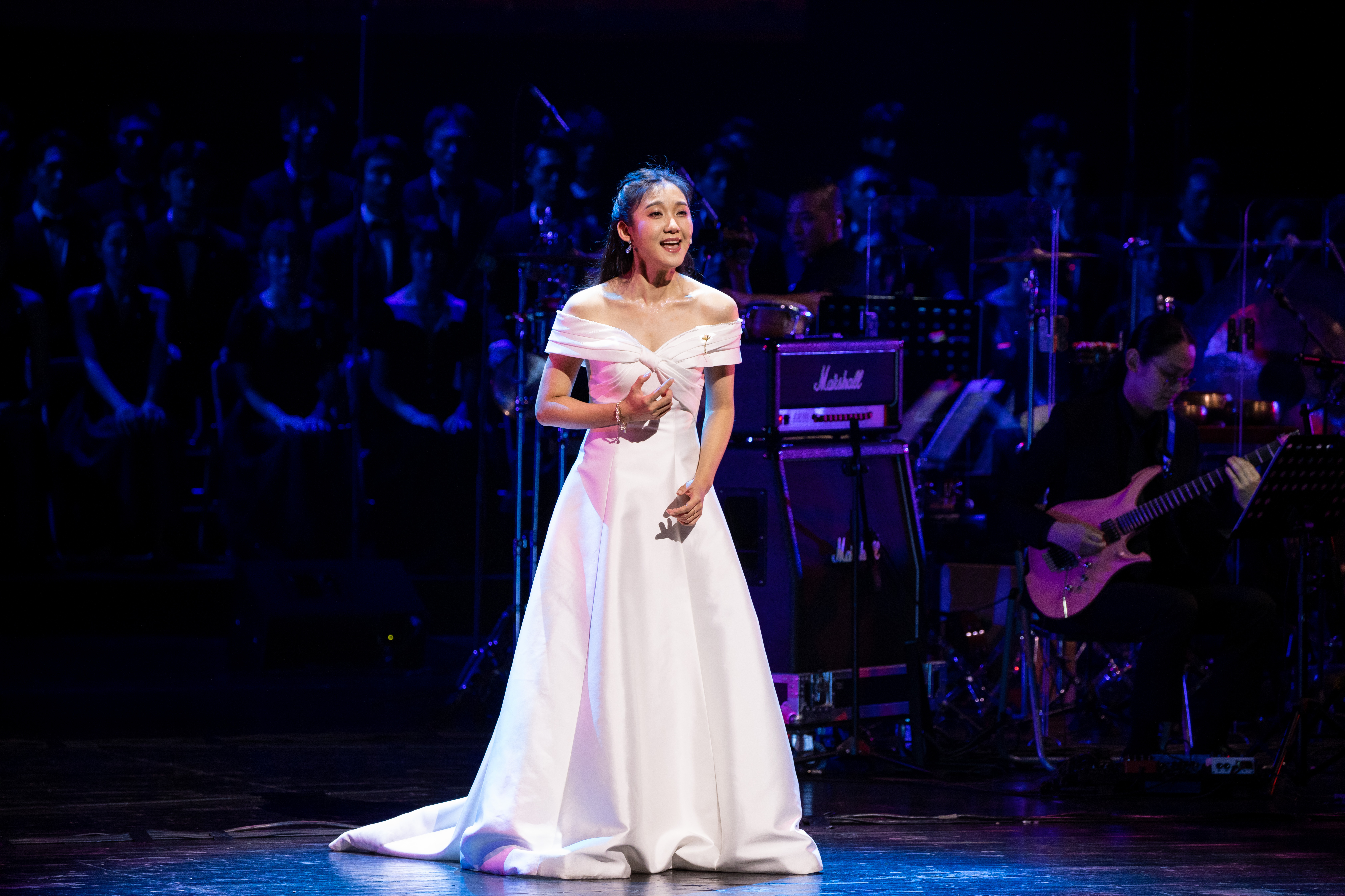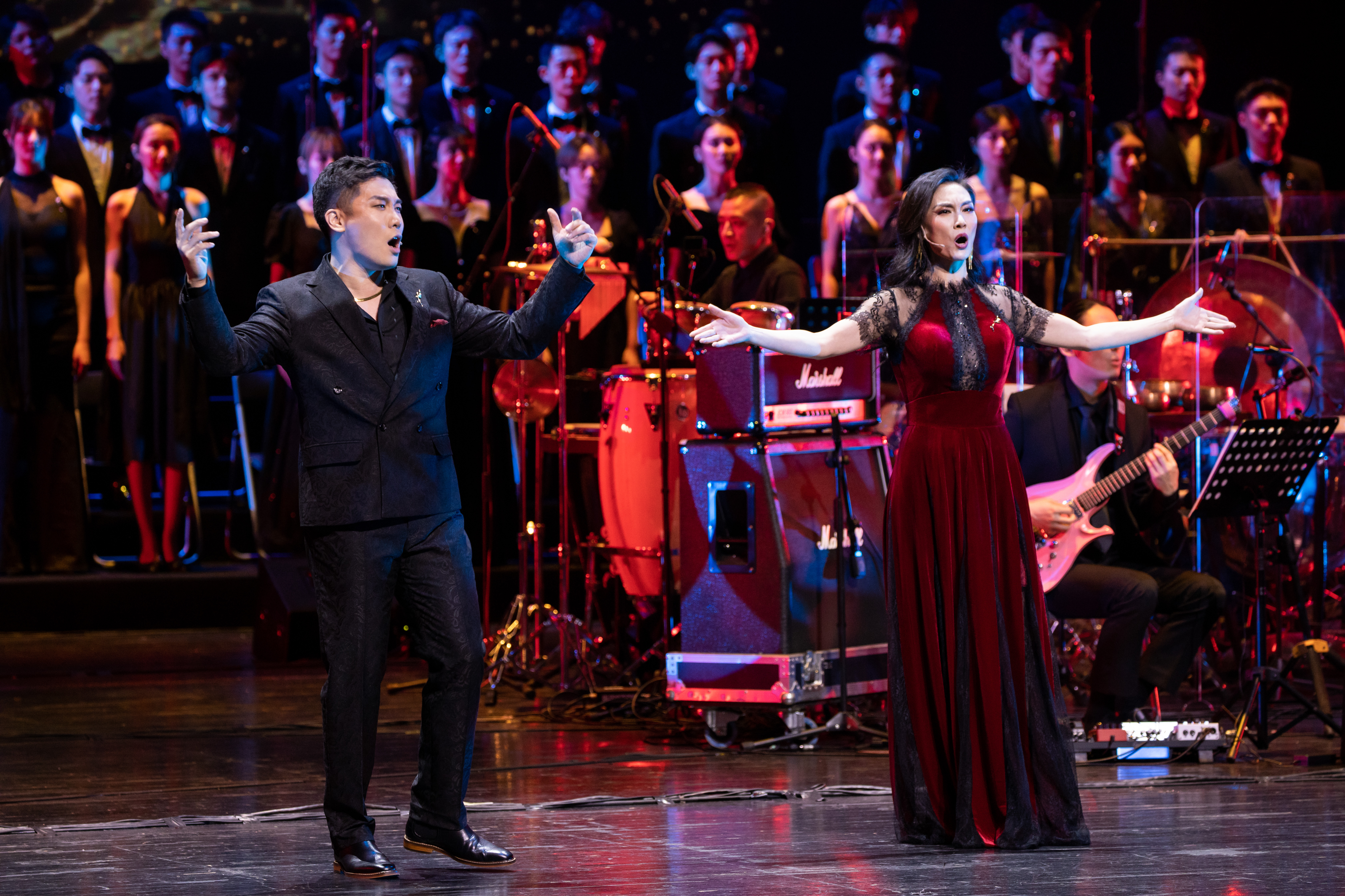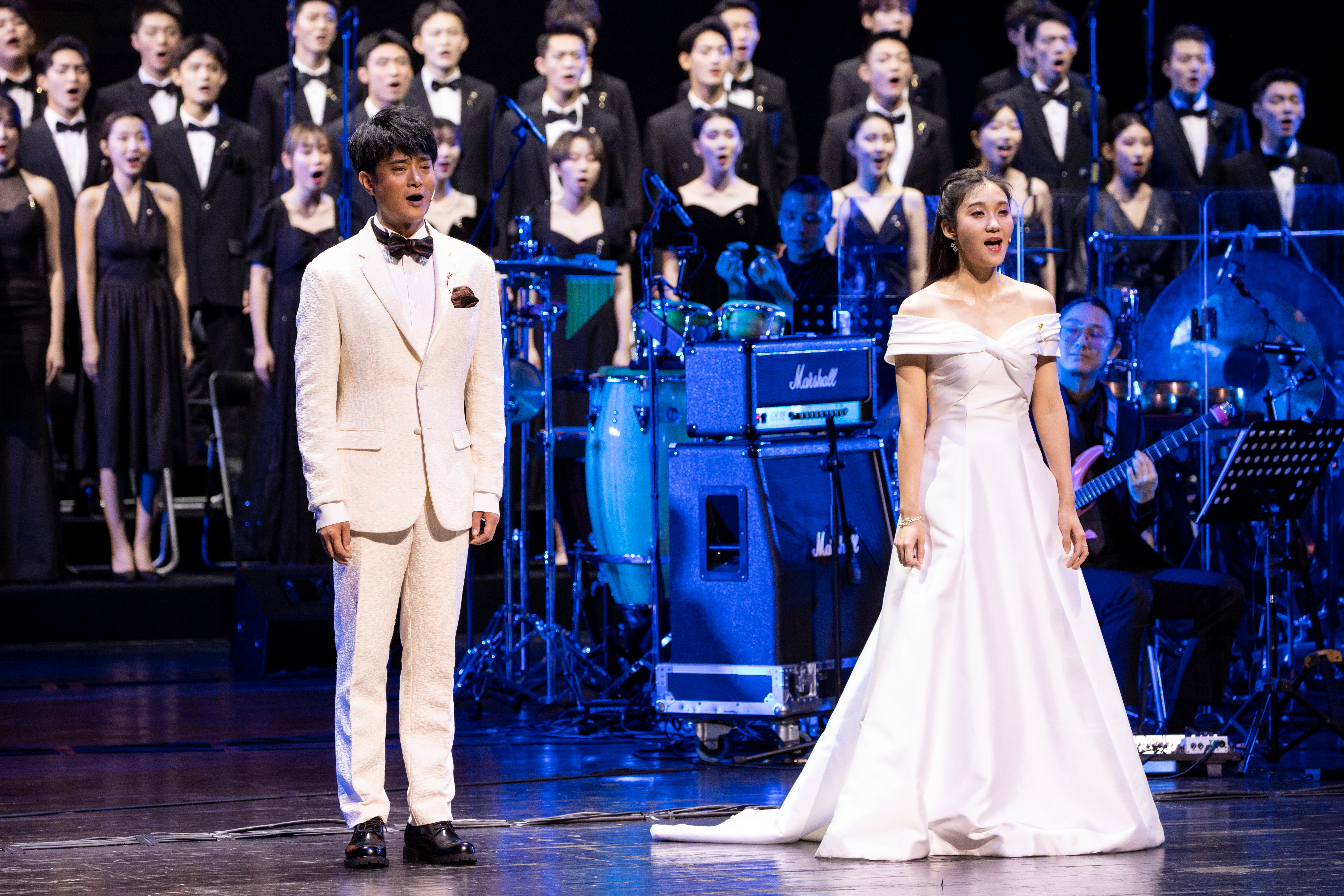 特邀嘉賓阿云嘎不僅獨唱了難度系數極高的金曲《余溫》,更與主演徐瑤合唱溫情脈脈的《我在夢里見過你》。當阿云嘎與蝶之舞合唱團一同唱響《飛天》,高超的唱功遇上合唱團的最強輔助,共同創造了當晚堪稱天籟的“神級現場”。