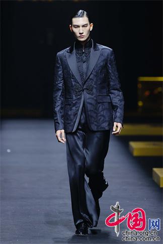 而在服裝結構和剪裁上,中式美學與世界裁剪交融,結構、廓形的交錯連貫,凸顯松與緊,簡與繁的平衡,將人體與服裝的立體空間關系獨具匠心的展現。同時此次大秀作品中大量使用了絲綢、絲毛混紡、精紡羊毛、三醋酸為主的高檔舒適面料,采用提花、定位花、刺繡、活性印染等高精工藝呈現設計師對主題靈感的闡述,更多的是體現設計師對于中國文化在精神層面的理解,尊重文化的沉淀,卻又不拘泥于形式,尋求自我審美的創造。