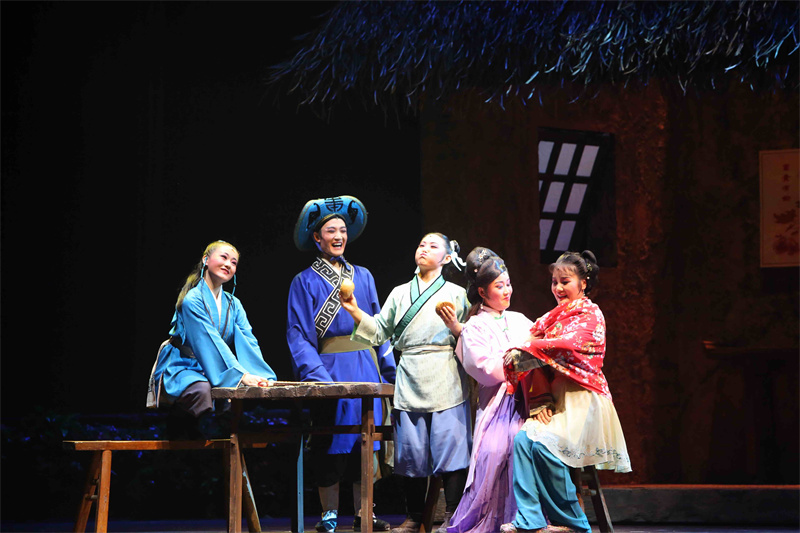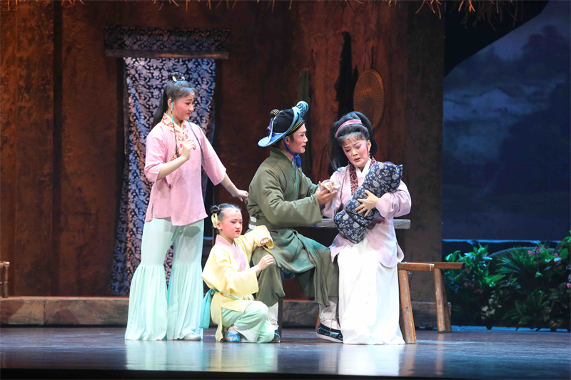 《三孝口》扎根傳統文化,同時充分考慮當代觀眾尤其是安徽以外觀眾的欣賞習慣,既不能失掉廬劇的傳統韻味,又要讓各地觀眾聽得懂。為此,劇團采取了一些創新手段,比如在念白上,要求演員在保持地域特色的前提下,盡量靠近普通話,這樣外地觀眾的觀看體驗會更好;對于那些地域性特別強的方言還是予以保留,以凸顯廬劇的個性特色?!度⒖凇返囊魳贩矫婕尤肓艘恍┈F代元素,唱法上融入了民歌腔調,舞臺場景布置借鑒“二幕”做法,保證了演出的節奏感與流暢性?!罢缫豢町a品走向市場,需要滿足人們的需求,需要大量的時間和宣傳讓大家了解、認可,對于傳統戲曲來說也是一樣的道理?!毙橛颜f,“我們要不斷拿出當代觀眾看得懂、喜歡看的作品,才能吸引更多人走近廬劇、喜愛廬劇?!?/span>