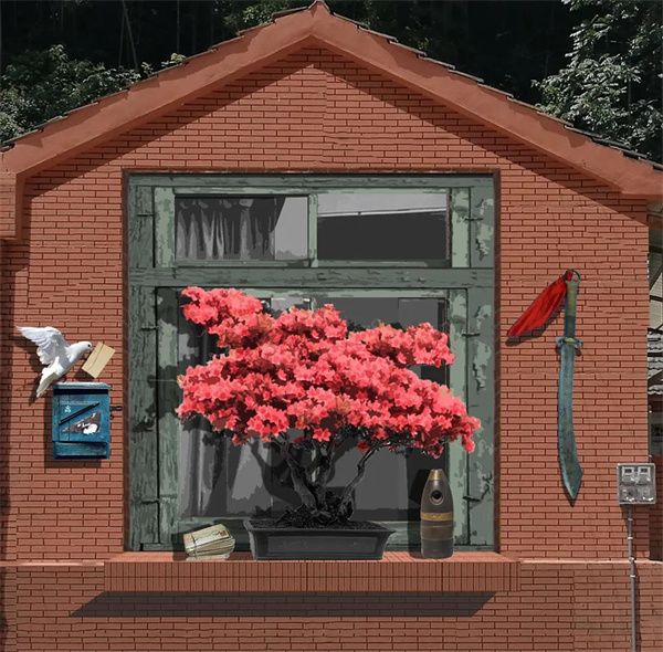安徽省六安市霍山縣諸佛庵鎮丙烯壁畫《窗前的杜鵑花》,中國美術學院繪畫藝術學院師生集體創作。