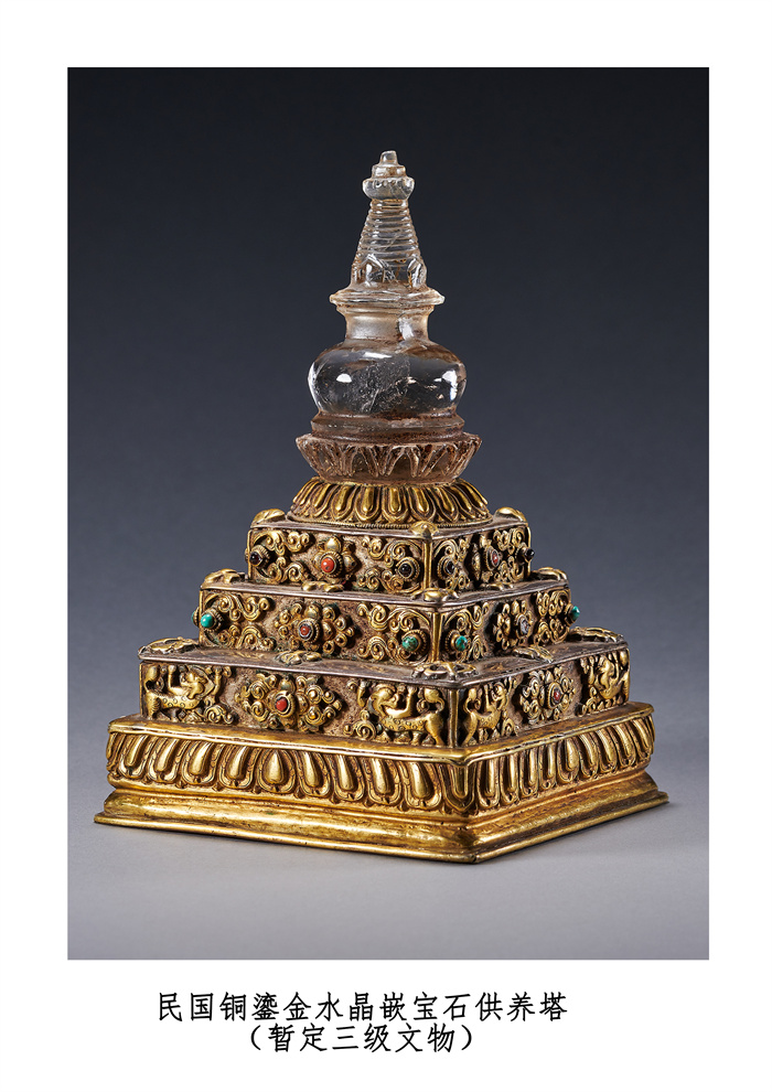民國銅鎏金水晶嵌寶石供養塔 暫定三級文物(國家文物局供圖,攝影:羅征)
