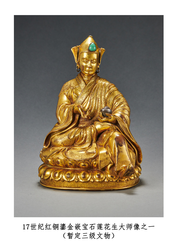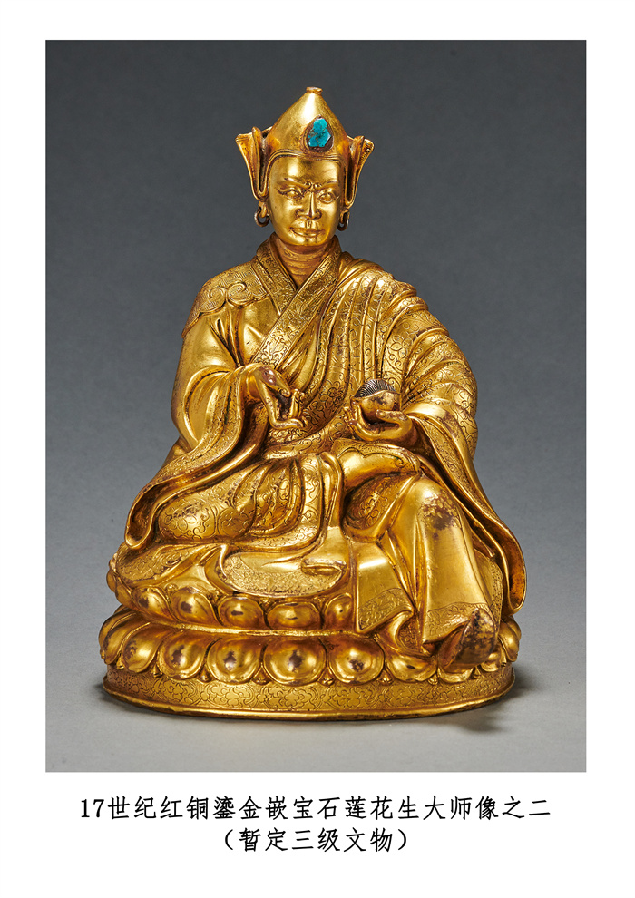 17世紀紅銅鎏金嵌寶石蓮花生大師像之一 暫定三級文物(國家文物局供圖,攝影:羅征)
