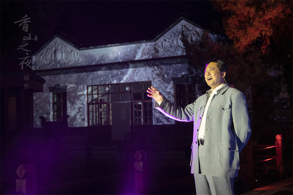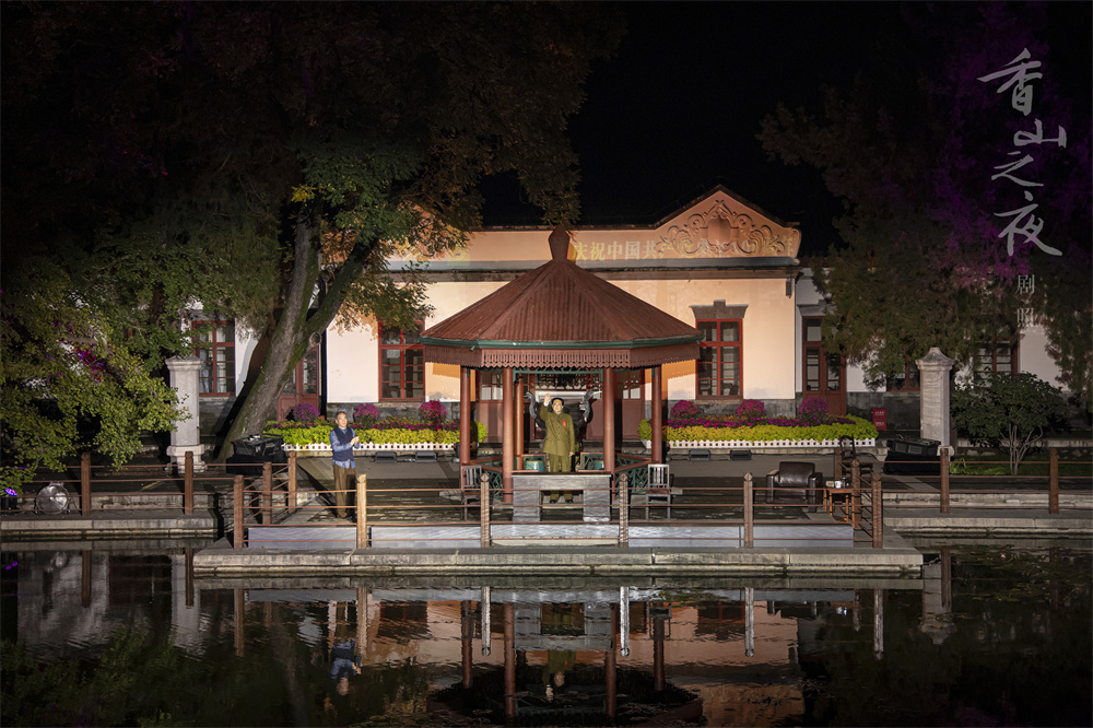 作為《香山之夜》劇情的發生地之一,雙清別墅是中共中央機關和中國人民解放軍總部從西柏坡進駐香山后毛澤東同志的辦公和居住地,是人民解放戰爭走向全國勝利過渡時期的指揮部,是籌備新政協、籌建新中國的歷史見證地,在中國共產黨黨史和中華人民共和國歷史上都具有非常重要的地位?!断闵街埂穪淼诫p清別墅前進行實景演出,是對創作初心的回歸,也是對主創團隊的一次嶄新挑戰。在真正的雙清別墅前再現和體驗72年前的華彩滄桑,不管對演員還是對觀眾而言,都非常興奮和激動。