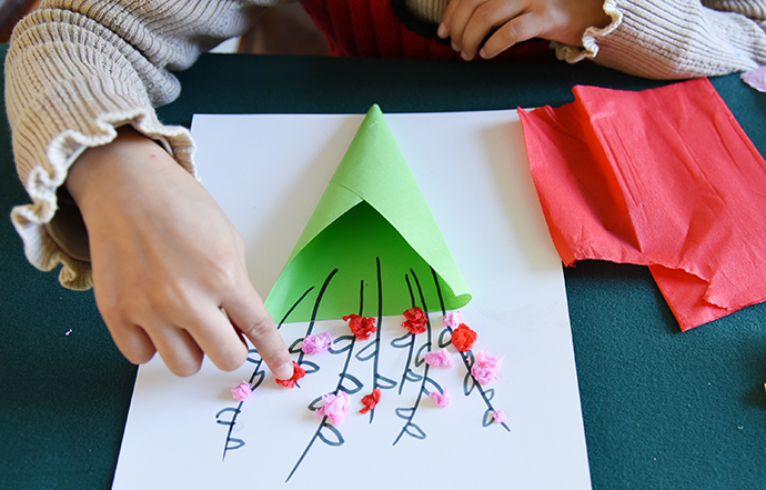 小朋友與家長手工制作茱萸花作品。人民視覺資料圖