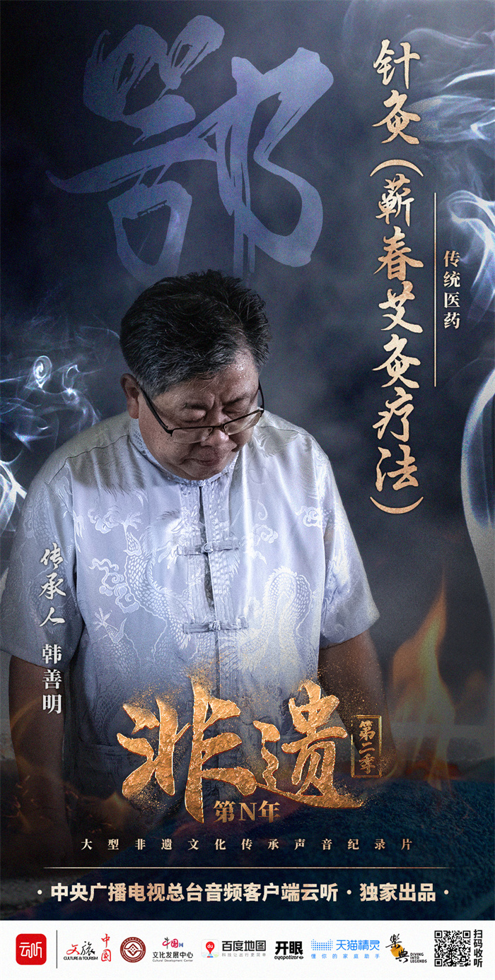 在剛剛上線的第一期節目中,張新成介紹了湖北省傳統醫藥——蘄春艾灸療法?!疤I春艾灸療法”是以產自湖北省黃岡市蘄春縣的艾草為灸材,將蘄艾葉曬干搗碎,制成艾條,燃灸經穴,或引火點灸柱,至愈不痛。該項目唯一一位傳承人韓善明,是土生土長的蘄春人,祖父、父親都是民間中醫,自小耳濡目染。15歲他就跟著祖父一邊讀書一邊行醫,并立志長大要當一名醫生。1989年,韓善明從湖北中醫學院畢業,回到老家蘄春從事中醫臨床工作。如今,蘄艾產業在蘄春飛速發展,凝聚著先人智慧的艾灸技藝,現已成為蘄春縣實施鄉村振興的惠民工程。