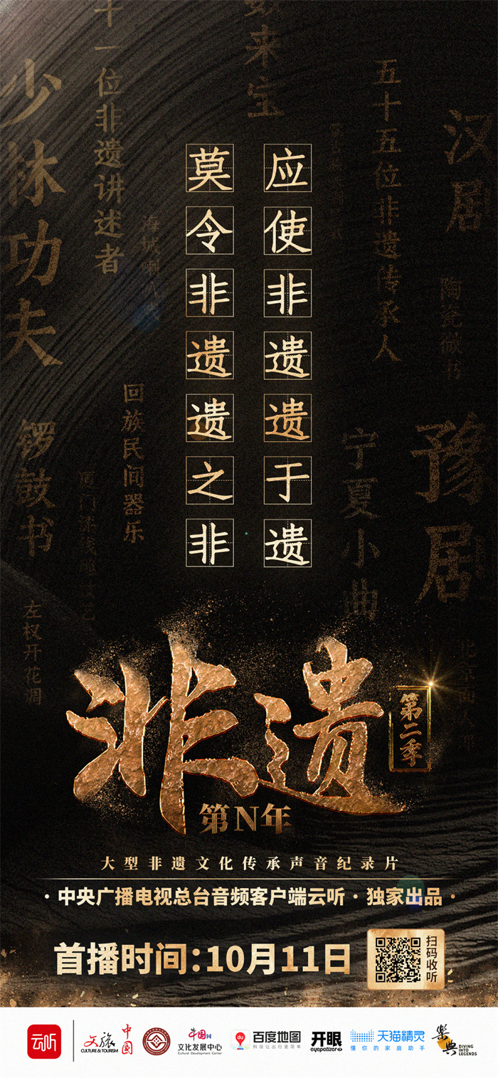 中國網北京10月19日訊 10月11日,云聽大型非遺文化傳承聲音紀錄片《非遺第N年》第二季正式開播。上線24小時即登上微博熱搜,引發全網關注討論。