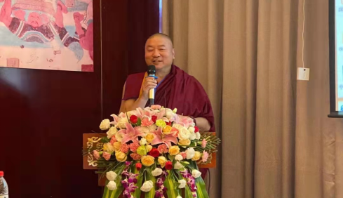 中國邏輯學會因明學專業委員會副主任、青海省因明學會會長、班禪因明學院院長噶爾哇·阿旺桑波發言:《論傳統因明邏輯學獨特思辨方式融入現代教育體系向中國時代化方向發展》