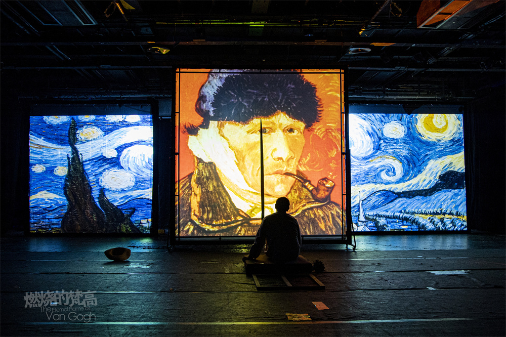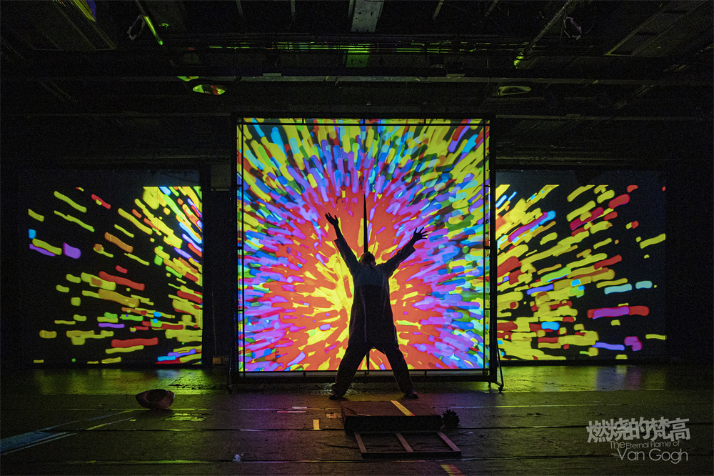 作為一部小劇場話劇,《燃燒的梵高》在舞臺呈現上展示出了極強的創造性,北京電影學院美術系教授楊慶生通過數字影像技術構成的舞臺語言將梵高的畫作與人生進行了緊密的結合,為觀眾帶來更身臨其境的觀劇體驗。