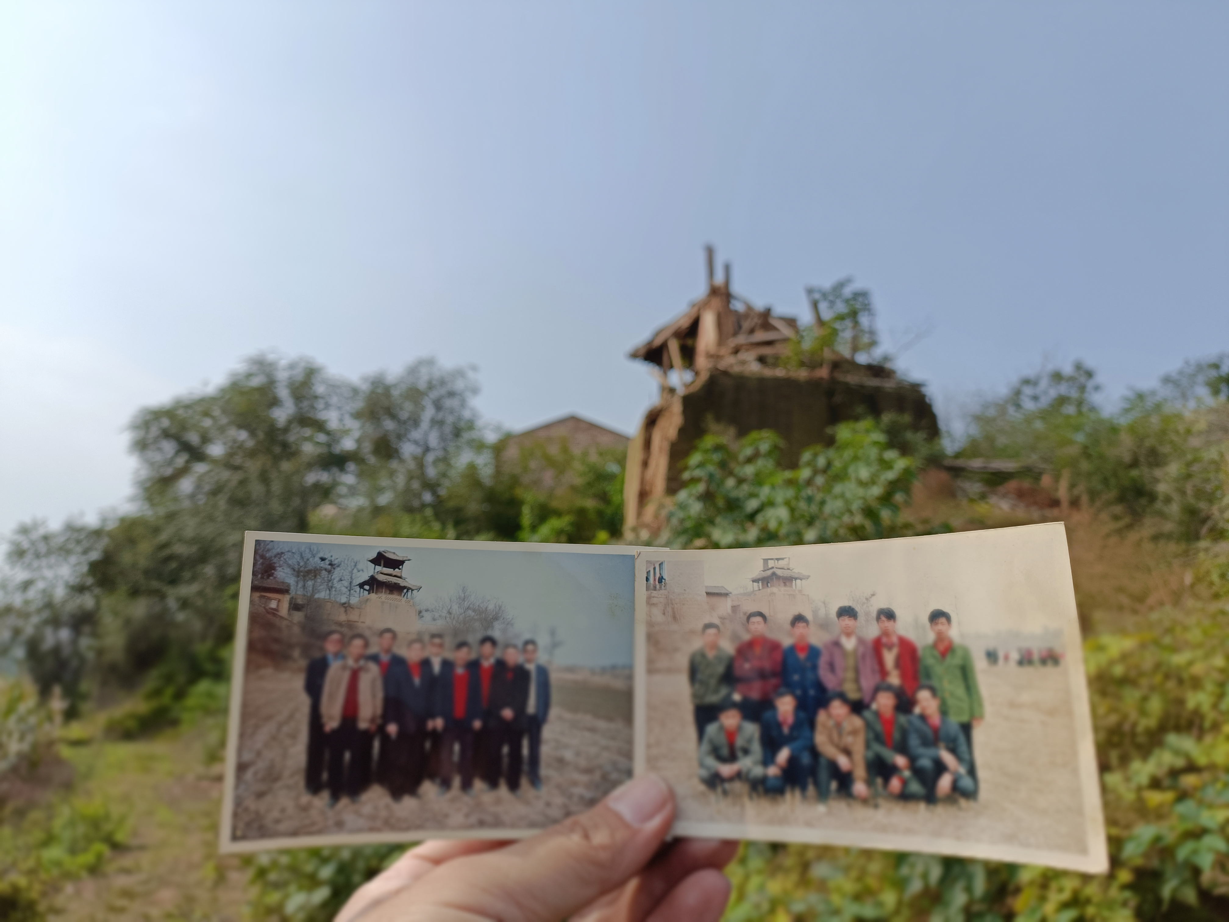 閆建林在9歲、18歲、27歲和36歲時,分別在魁星樓前拍下過照片,也是一點一點看著它變得破敗。人們不再與魁星樓合照,閆建林45歲那年的照片拍攝地改在了村口。