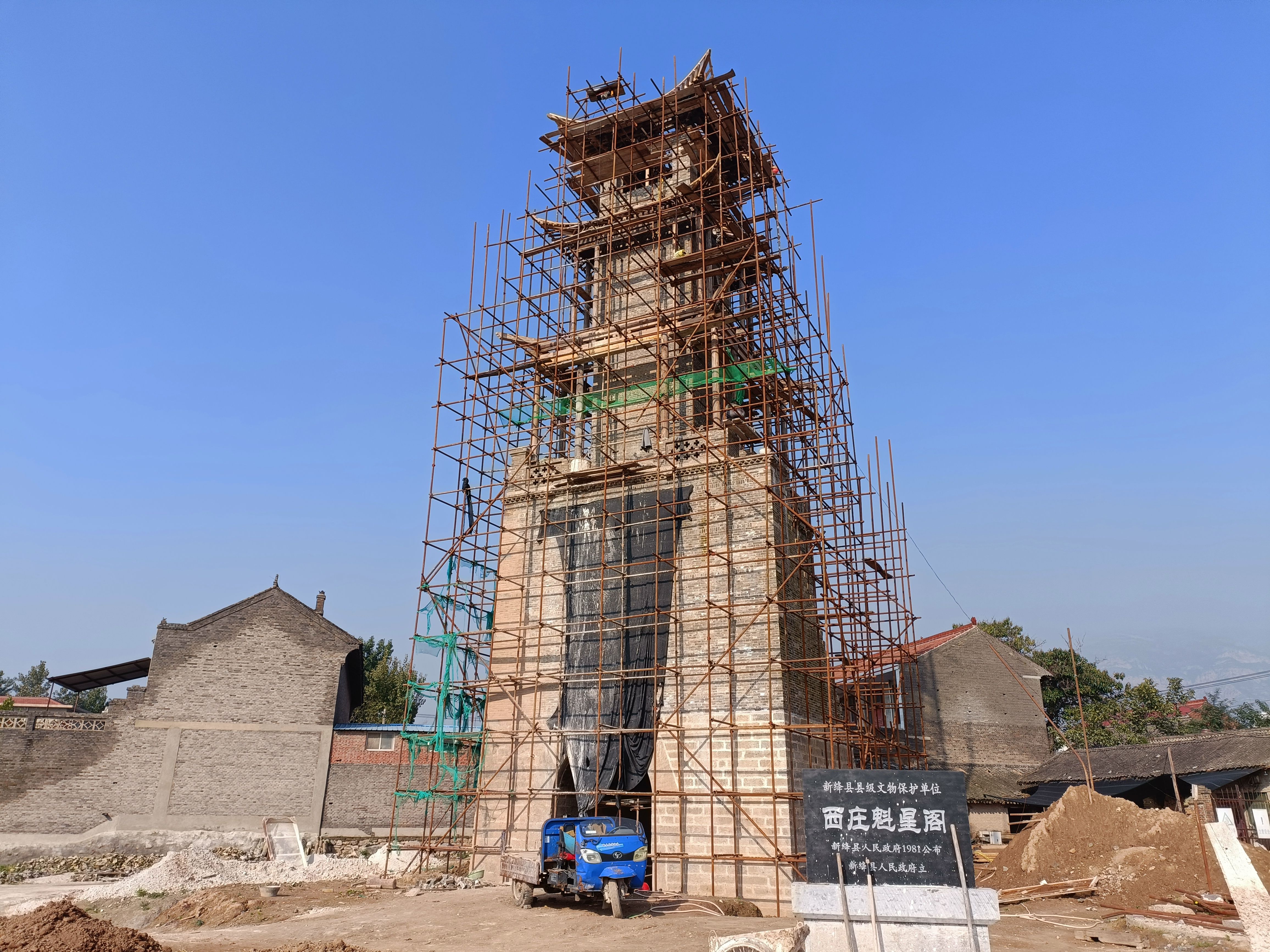 閆家莊村十幾公里外,西莊村的魁星樓是一座建于清代的三層三檐磚木建筑,1981年被納入新絳縣縣級保護文物保護單位。今年3月,新絳縣文物保護中心出資對其進行保護修繕。