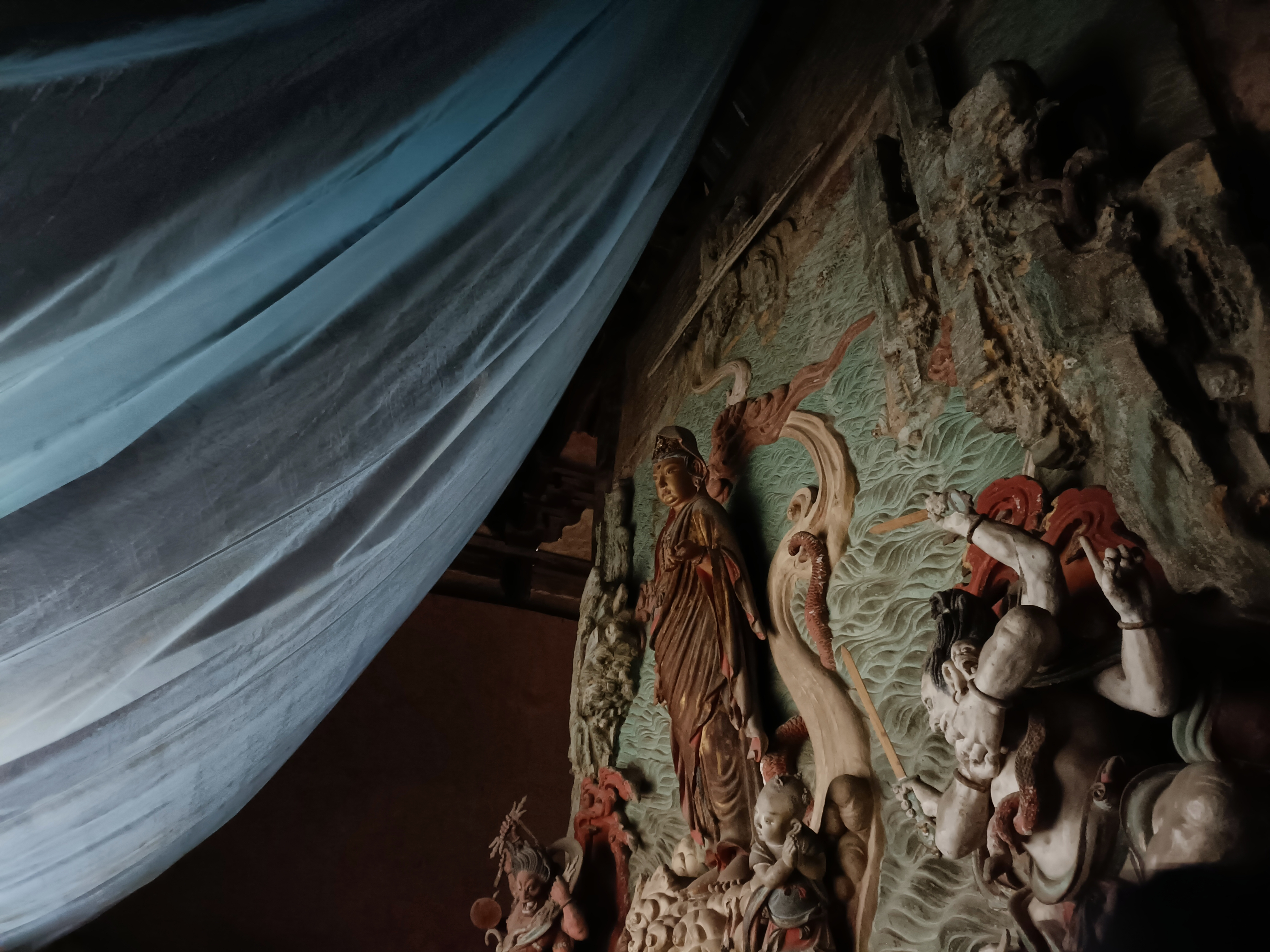 他能做的也只有這些。李天?;加行郝楸园Y,走起路來一瘸一拐,他爬不上高處,無法給漏雨的大殿扯一塊擋雨布。這些還是文物局的工作人員來了之后才做到的,他們找來腳手架,搭到屋頂,扯起一塊大的塑料布,一點一點拉扯著,罩住了大部分佛像,光這一項就花了一個多小時。