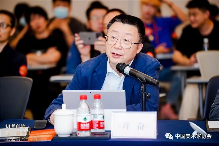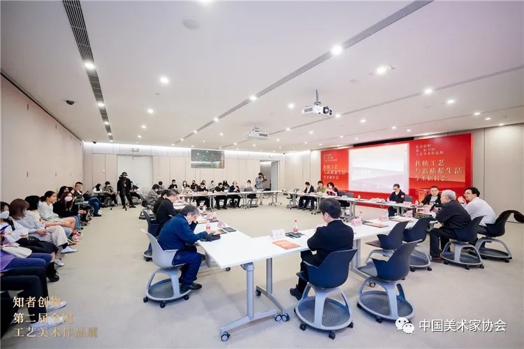 展覽開幕同時舉辦了“傳統工藝與高質量生活”學術研討會,中國美協工藝美術藝委會秘書長、山東工藝美術學院設計策略研究中心主任孫磊教授主持研討會。特邀專家學者、中國美協工藝美術藝委會委員、作者代表、相關高校師生等參加研討會,與會專家圍繞工藝美術學術生態的當代建構以及時代美育背景下,工藝美術創作者應該秉承的創作趨向、態度和責任等議題展開主旨發言及研討。