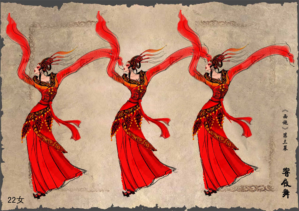 歌劇《西施》服裝設計圖響屐舞女演員