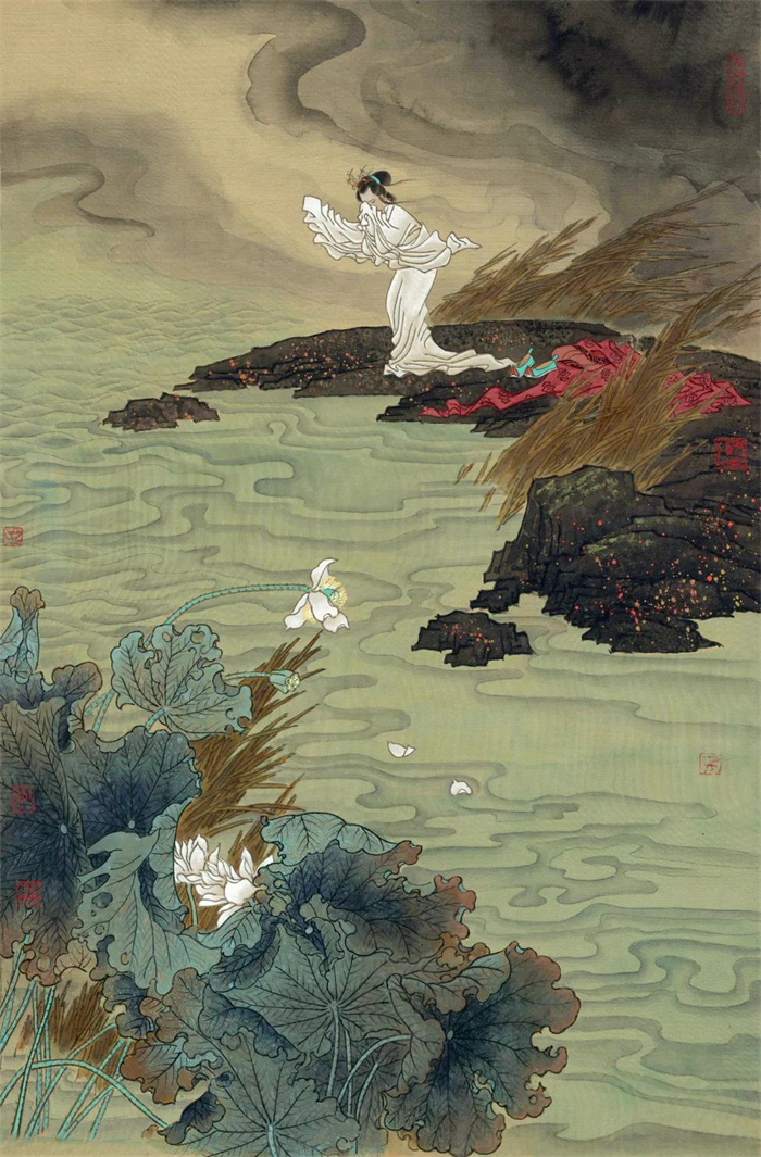 孔雀東南飛-舉身赴清池 蕭玉田 34.5x52.5cm