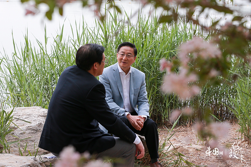 王曉輝、徐里在南海子公園席地而談。中國網記者 姜一平 攝