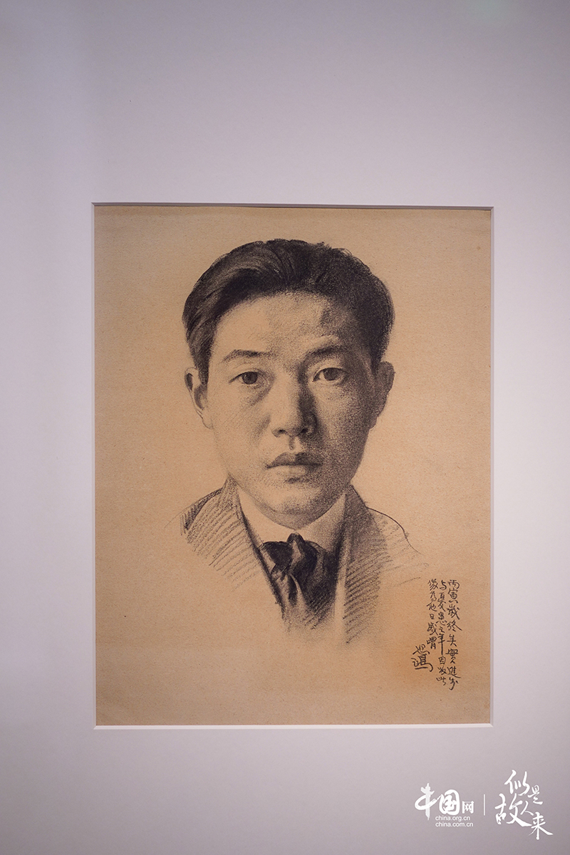 中國著名畫家徐悲鴻自畫像。中國網記者 胡俊 攝