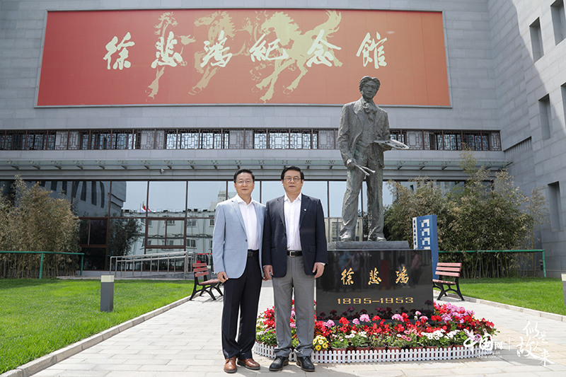 王曉輝、徐里在徐悲鴻紀念館前合影留念。中國網記者 胡俊 攝