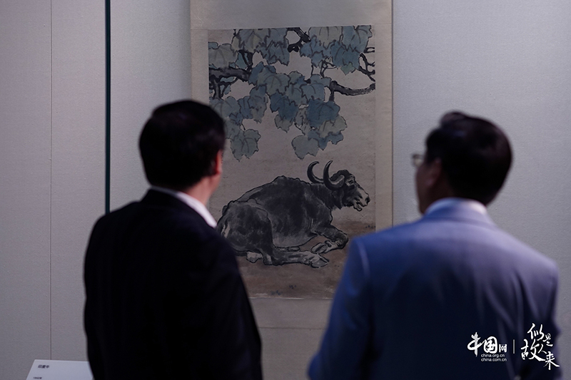 王曉輝、徐里欣賞徐悲鴻畫作。中國網記者 胡俊 攝