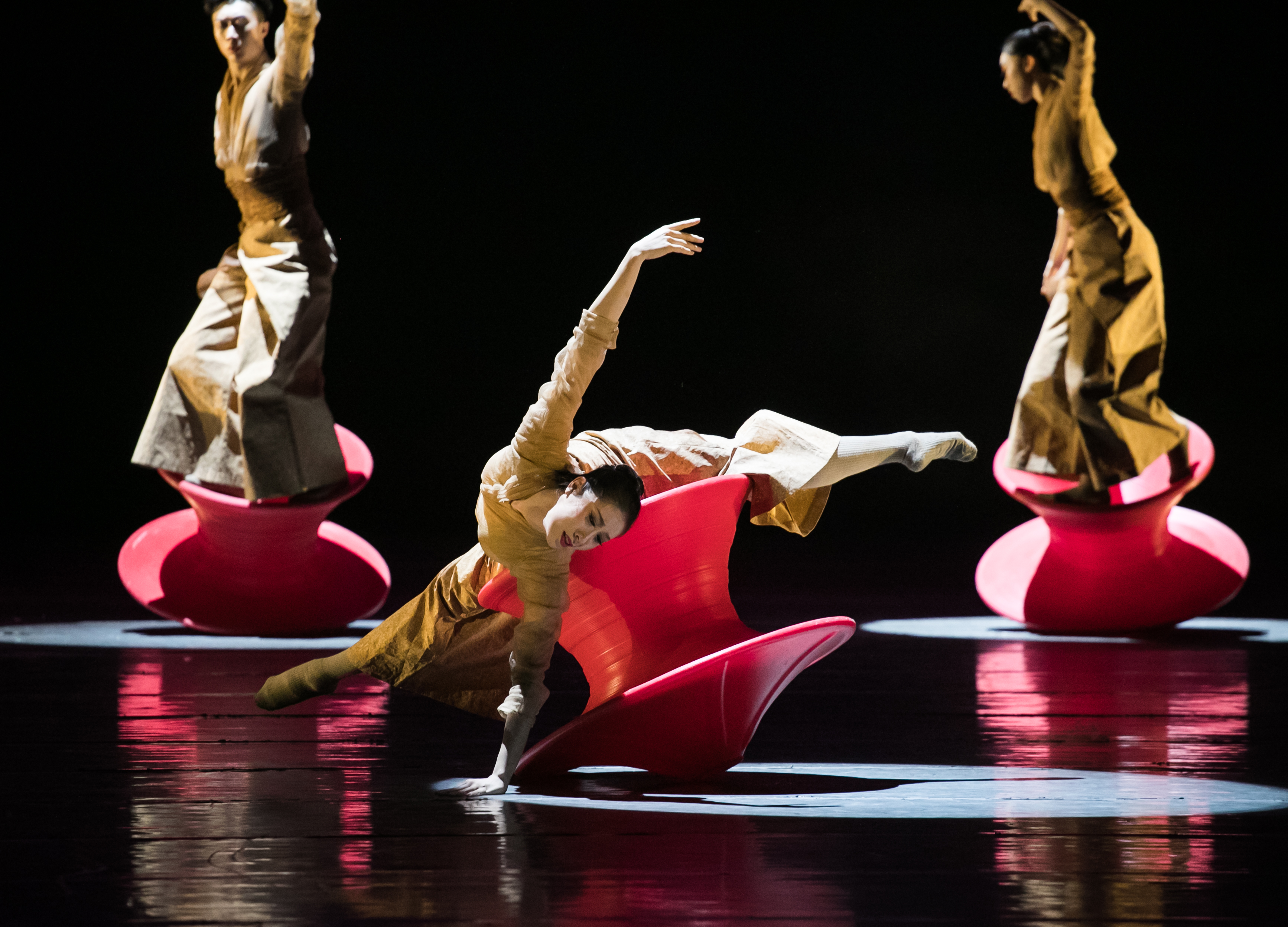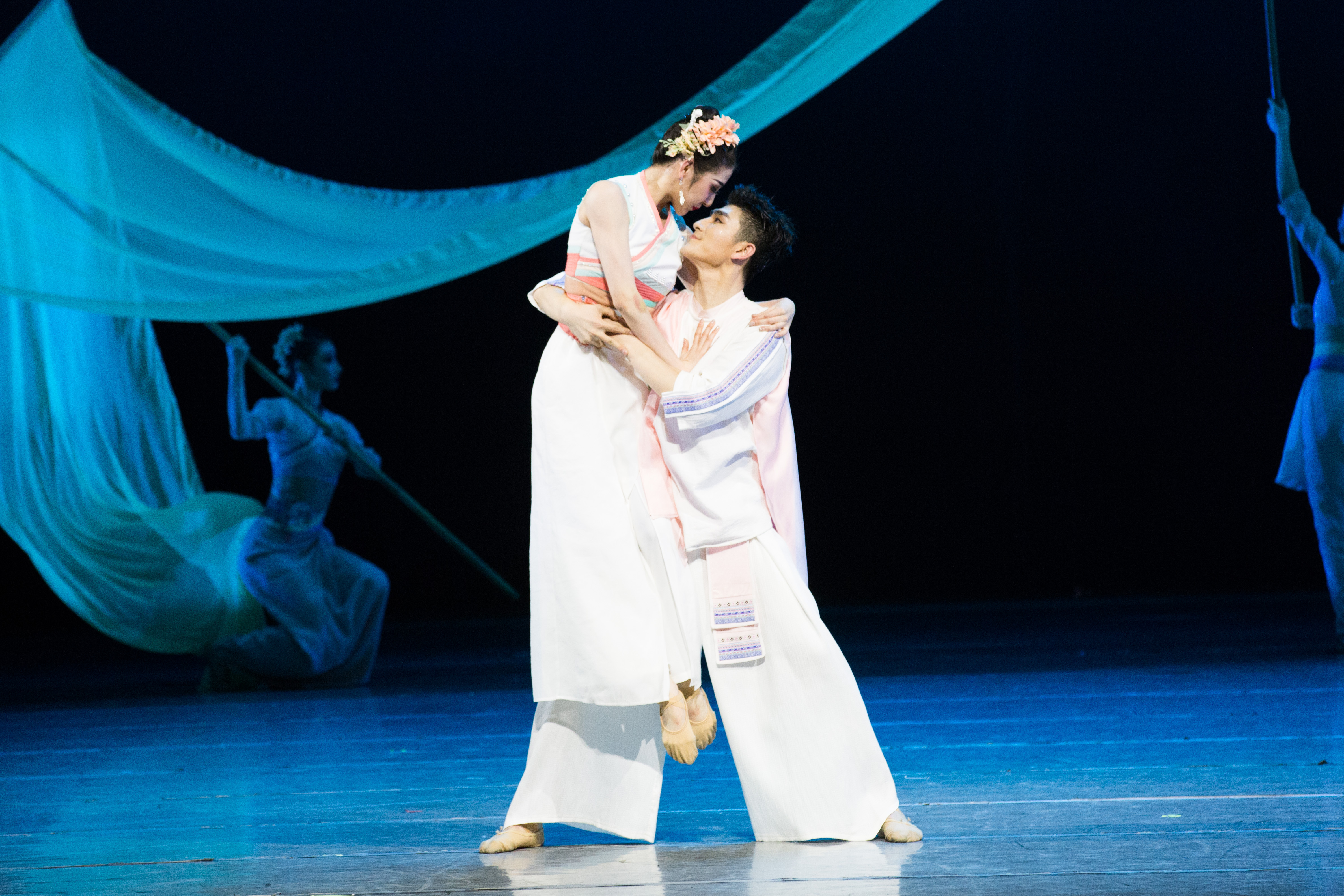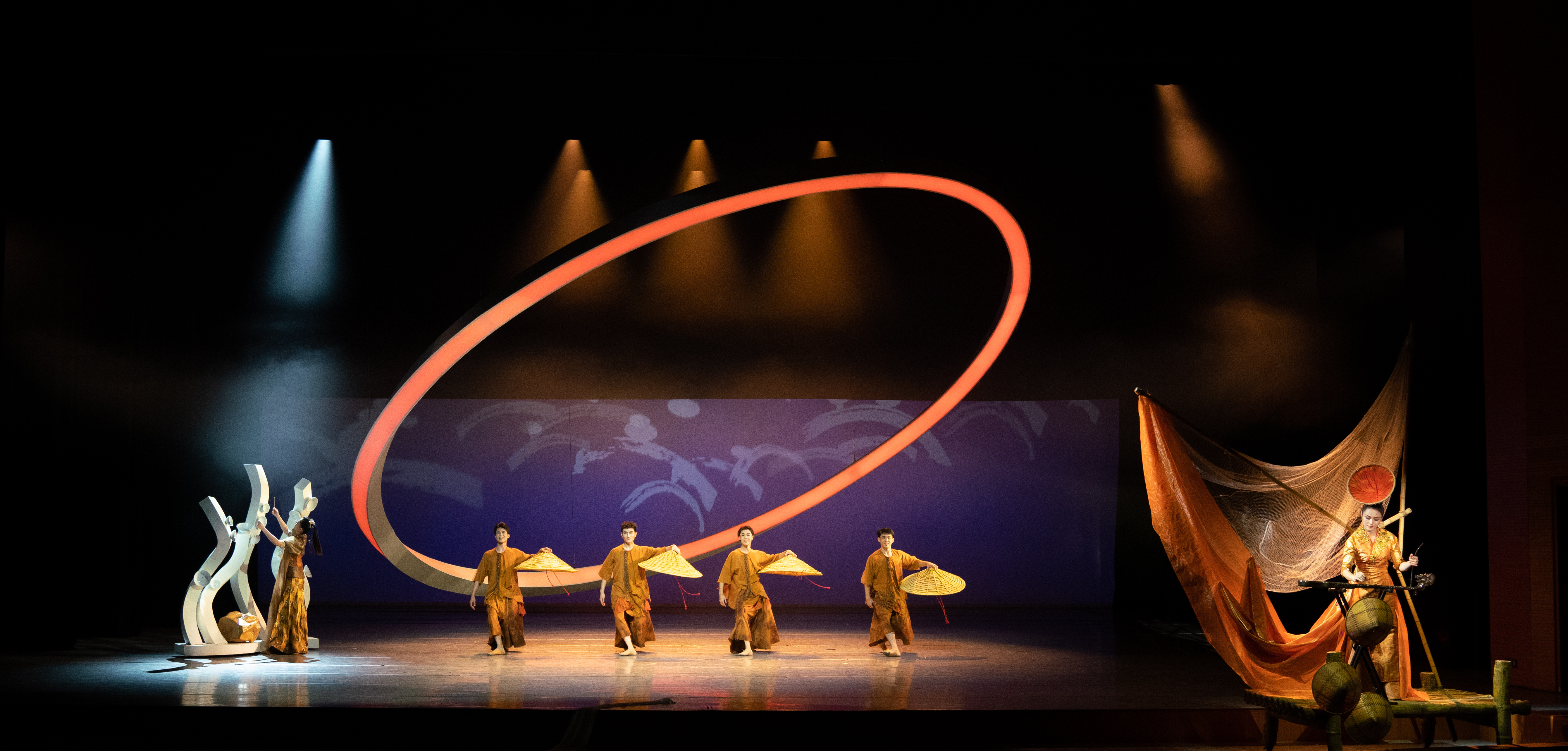 本劇用舞蹈、音樂描繪了多個民族生活、勞作的美好場面:朝鮮族鼓、樂、舞;京族漁民在淺海捕魚的景象;苗族傳統民俗活動“斗?!钡?,同時融合了“宏音齋”笙管制作技藝、北京風箏制作技藝、傣族染坊手工藝等非物質文化遺產元素?!捌狻边@一形象貫穿全劇,通過戲劇藝術在劇場空間融合碰撞,將觀眾帶入時空隧道,最終引出“我們徜徉在時間的長河,用不同的泳姿劃向共同的彼岸”這一內涵,呈現出對時間與命運的思考。