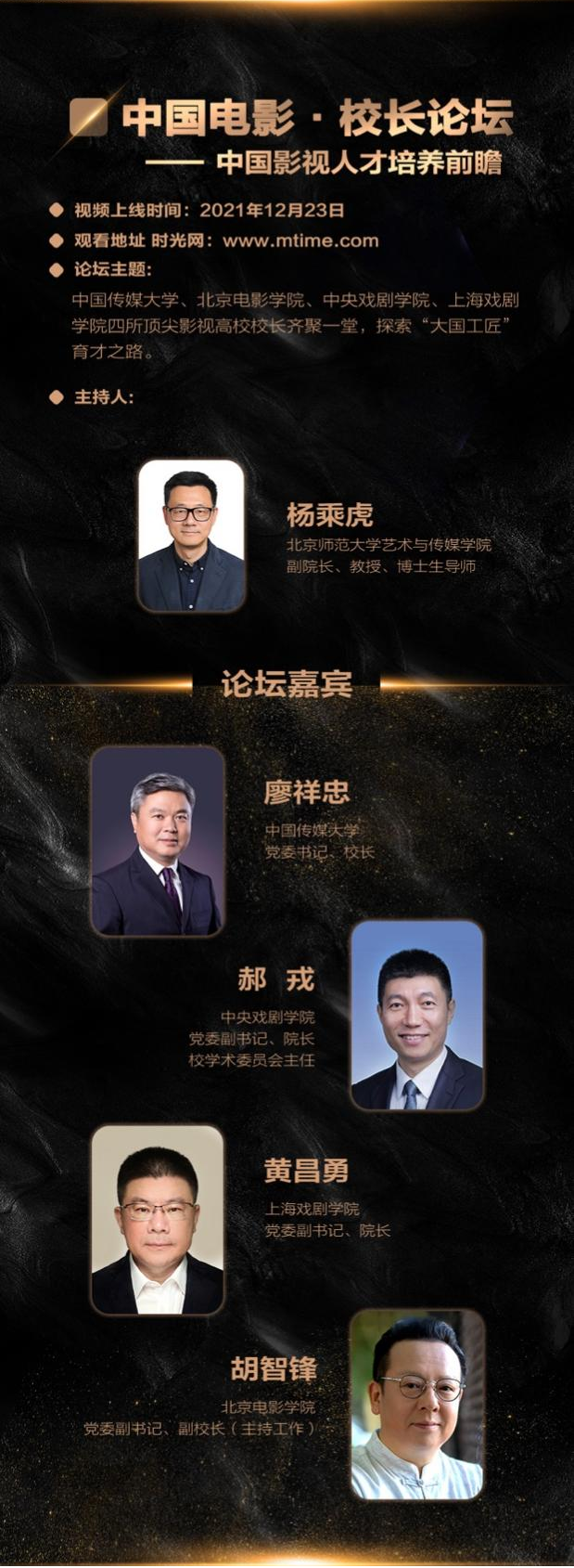 主題:人才是影視行業發展前進的第一資源要素。該論壇邀請中國傳媒大學、中央戲劇學院、上海戲劇學院和北京電影學院四所院校的影視教育專家,圍繞“如何為中國影視的未來培養、儲備優秀人才”這一重要議題,進行全面、系統、深度的探討。