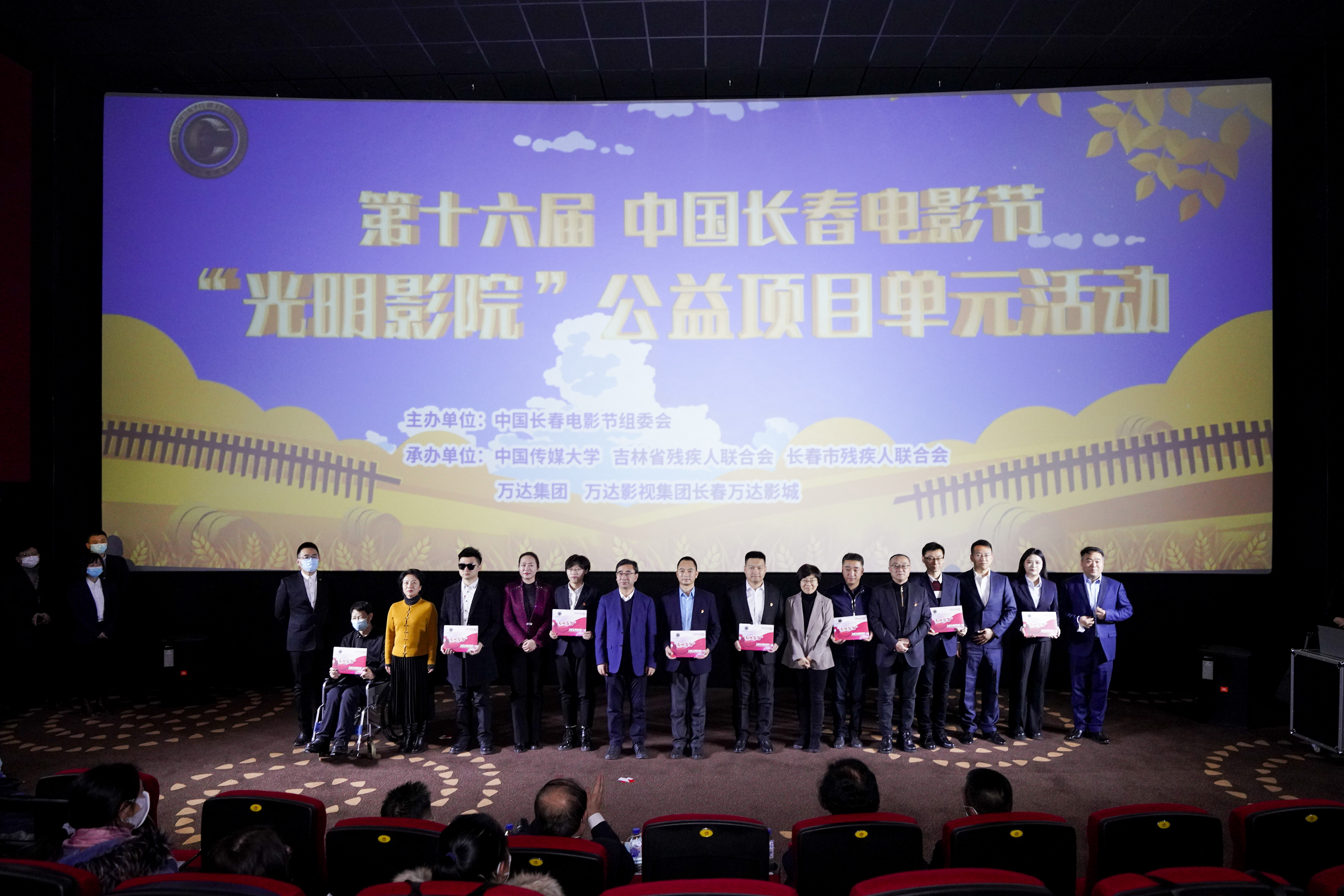 中國網12月22日訊 2021年12月22日,第十六屆中國長春電影節“光明影院”公益項目單元活動在長春萬達影城歐亞新生活店舉辦。吉林省人民政府副秘書長季景偉,中國傳媒大學校務委員會副主任胡芳,中國傳媒大學電視學院黨委副書記程素琴,中國傳媒大學無障礙信息傳播研究院執行院長付海鉦,吉林省殘疾人聯合會理事長潘宏峰,吉林省殘疾人聯合會副理事長張振英,吉林省殘疾人聯合會副理事長蔣海燕,中共長春市委常委、宣傳部部長趙明,長春市殘疾人聯合會理事長高麗麗,萬達文化集團總裁兼萬達影視集團總裁曾茂軍,長春影都常務副總裁兼萬達電影節籌備組總經理韋翔東,長春影都副總裁兼萬達電影節籌備組副總經理肖祎等出席本次活動。