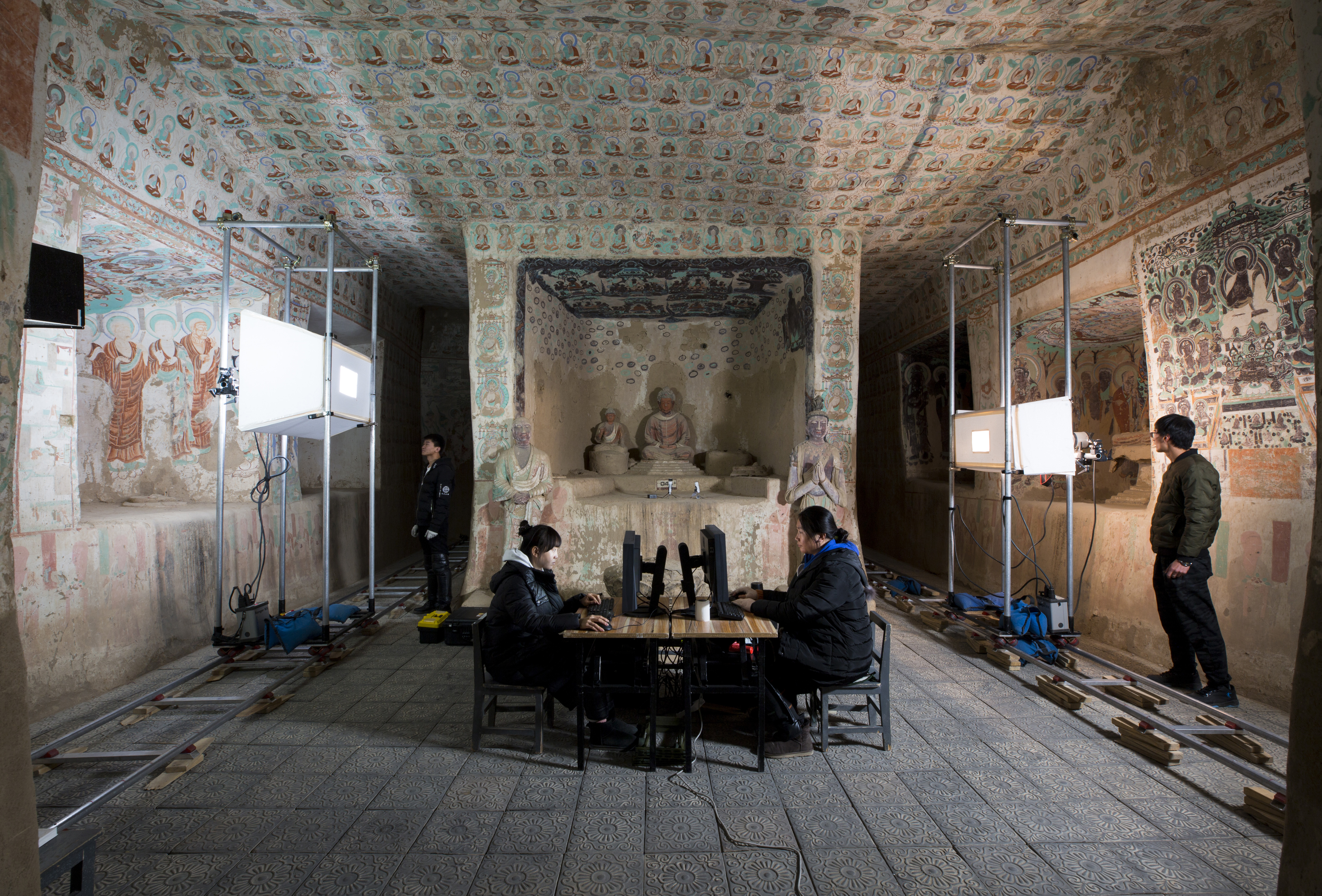 莫高窟第44窟壁畫數字采集現場(國家文物局供圖)