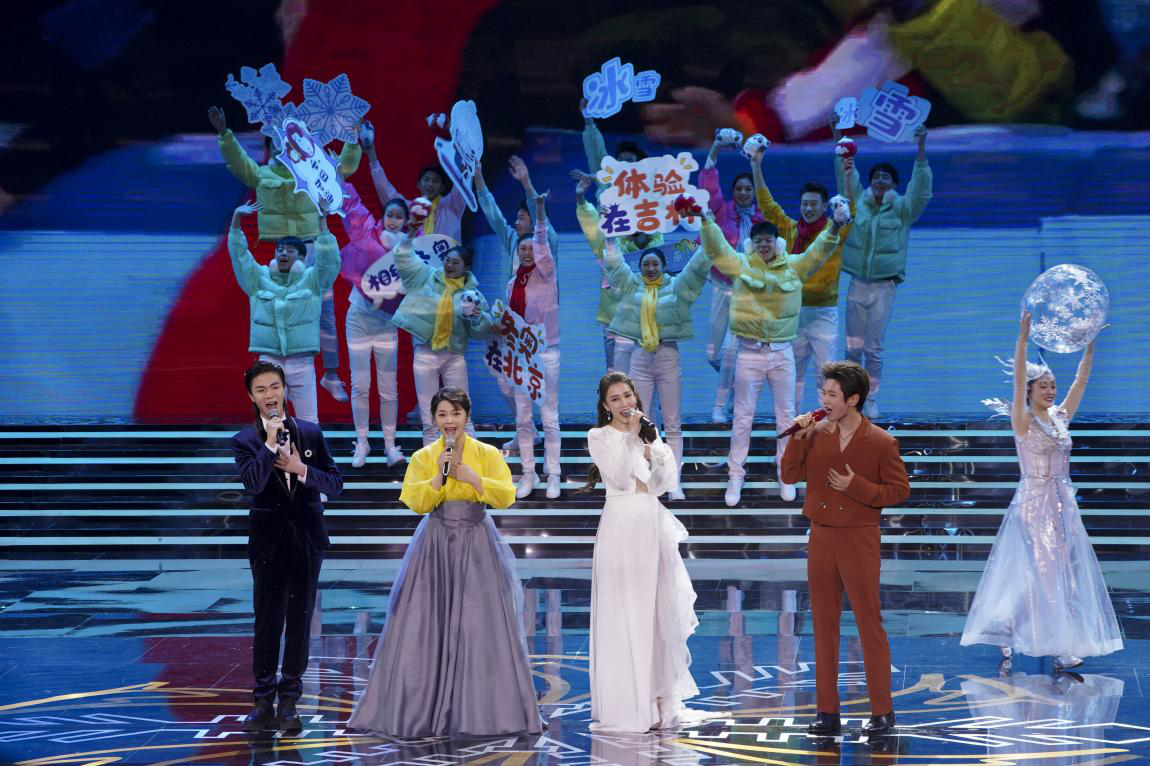 歌手嚴當當、方書劍、弦子、李汶翰為觀眾帶來了歌舞《冰雪冬奧》。在冰雪中迎接新的希望,擁抱新的未來……手拉手一起微笑,把冰雪凝固成友誼之橋。青春動感的歌聲,讓每一個人深刻地感受到冬奧在北京、體驗在吉林。