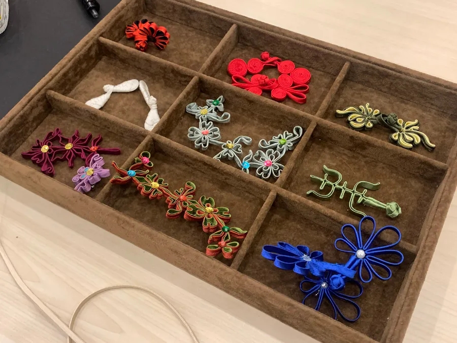 此外,她還在旗袍的盤扣制作技藝上進行了創新:她結合國畫中工筆花卉與寫意的技法,設計出多種花形,搭配在旗袍上,使之增添光彩。李侃說:“現在我們的顧客越來越年輕化。例如,很多人會選擇定制旗袍,在婚禮上穿著。所以,我們也要與年輕人積極地溝通,參考他們的想法,制作也要迎合他們的需求?!?/p>