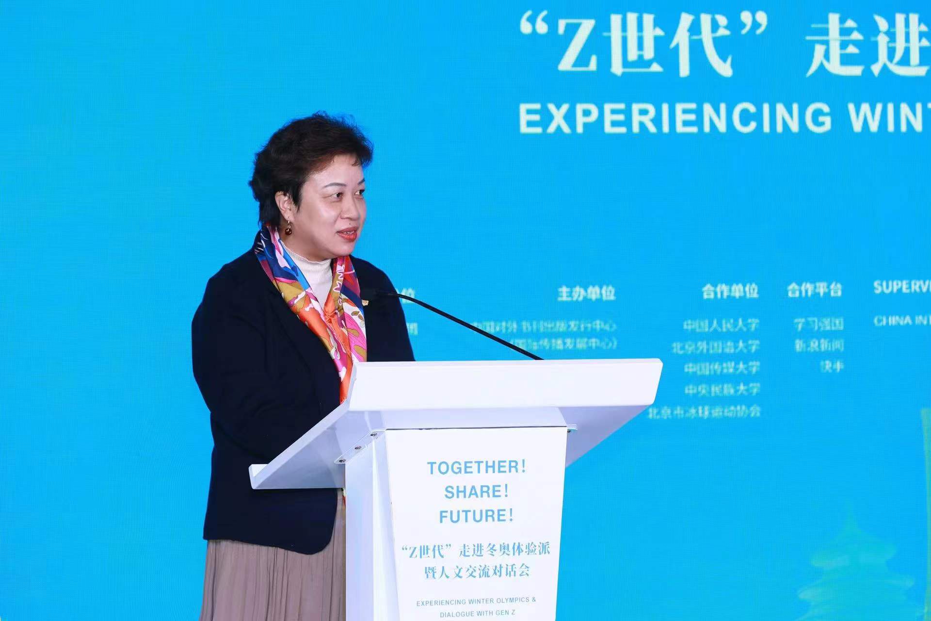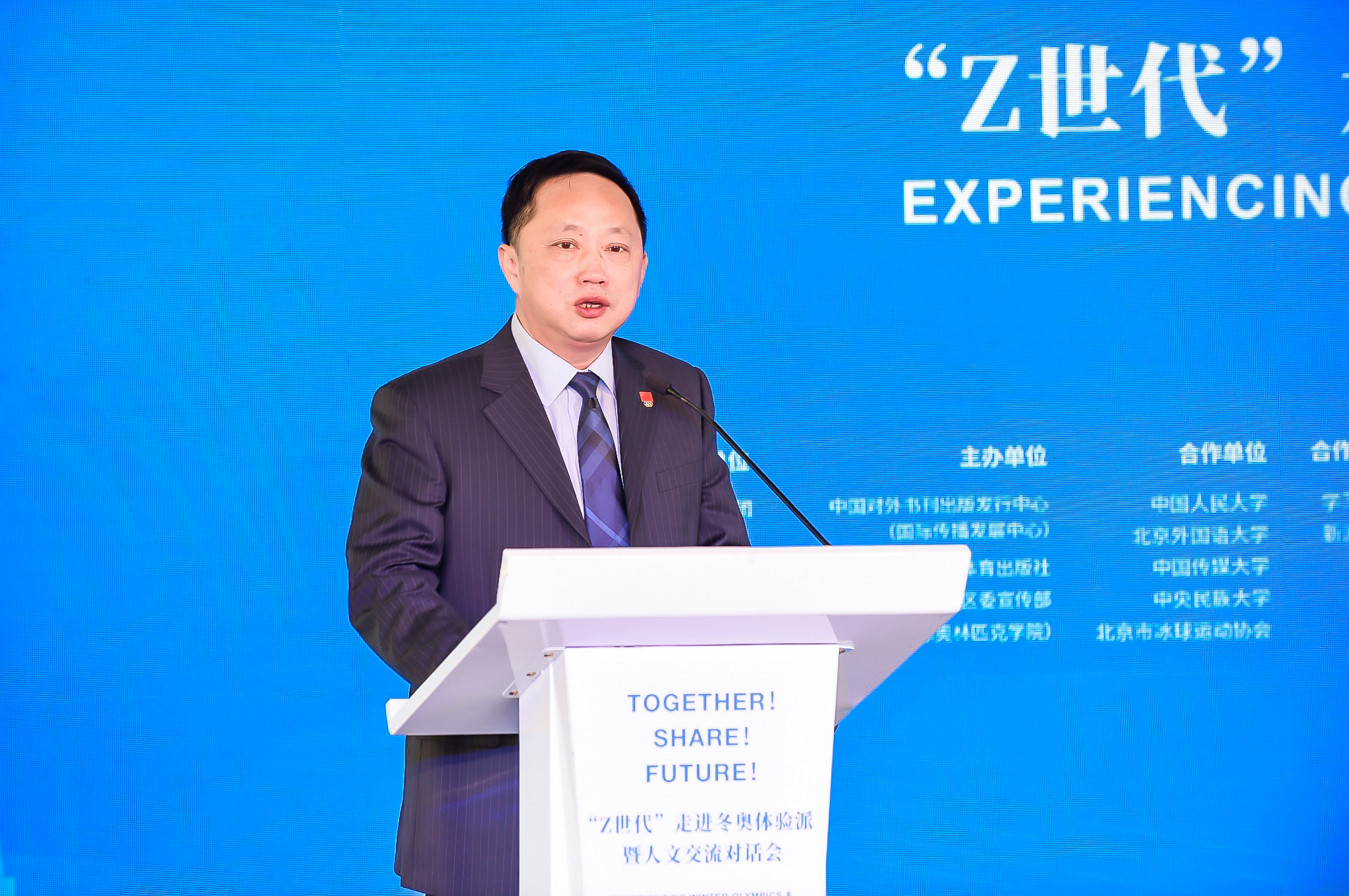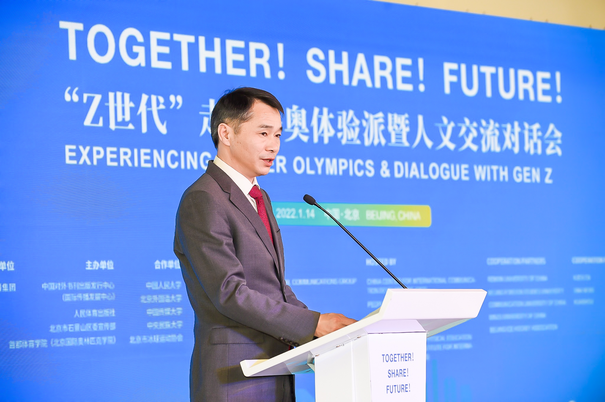 中國網北京1月15日訊 昨天,Together!Share!Future!“Z世代”走進冬奧體驗派暨人文交流對話會成功舉行。本次活動由中國外文局指導,中國外文局國際傳播發展中心、人民體育出版社、北京市石景山區委宣傳部、首都體育學院(北京國際奧林匹克學院)等單位聯合主辦。中國外文局副局長陸彩榮,中國外文局副總編輯、國際傳播發展中心主任陳實,人民體育出版社總編輯王成、首都體育學院(北京國際奧林匹克學院)副校長陳作松、北京市石景山區委宣傳部副部長白曉以及來自高校、媒體等各界嘉賓及中外青年代表出席活動。