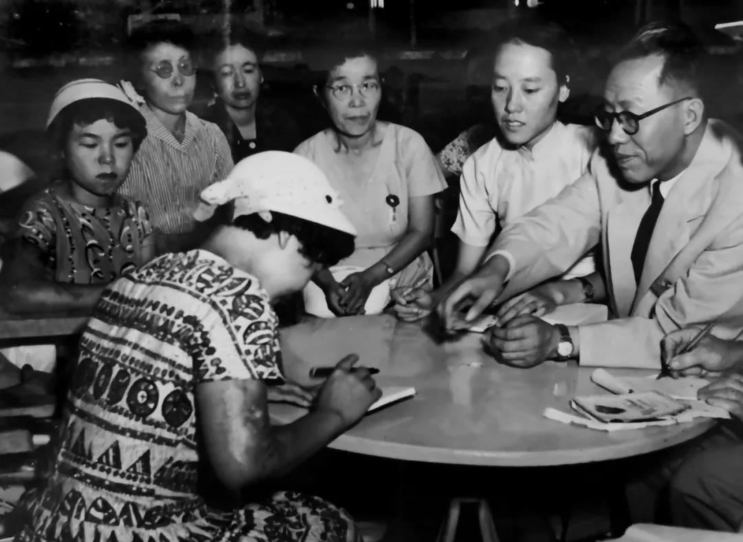 在50年代到60年代的多次訪日活動中,1963年11月5日至12月3日為期近一個月的中國作家代表團第四次訪日活動,安淑渠作為譯員隨行,留下較多生動而珍貴的照片。這一年的2月,廖承志對《人民中國》提出了調整辦刊定位,加大文化內容,擴大讀者對象的要求。6月,為紀念《人民中國》創刊十周年,當時的外文出版社訪日團赴日廣泛聽取讀者、發行者和日本作者等各界意見,為調整編輯方針,加大社會、文化、人民生活方面內的報道內容做了扎實的調研論證。而年底的作家代表團訪日,正是從活動層面體現了當時國家加大對日文化交流力度的舉措。從珍貴的現存照片來看,此次訪日巴金、冰心等中國作家和日本作家進行了深入、廣泛的交流,為兩國民眾的民心相通起到了重要的推動作用。