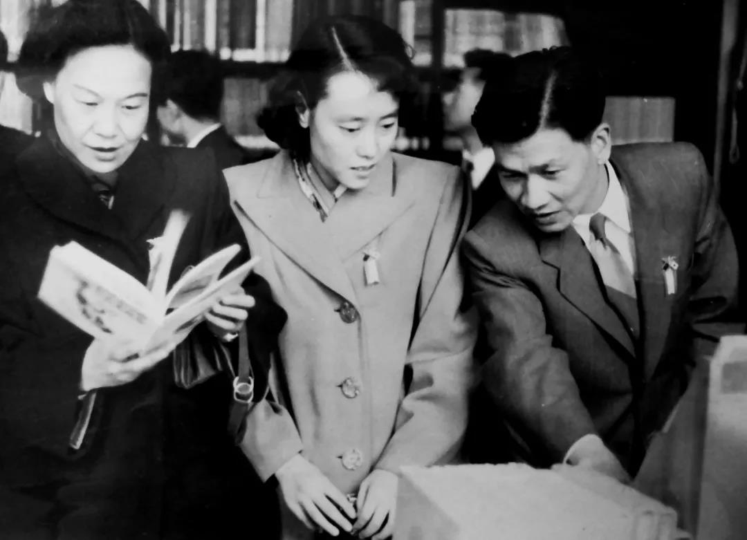 1952年安淑渠進入《人民中國》的時候剛剛22歲,起初的工作是做美編,具體工作是畫版樣、排版、找插圖和照片,也兼做校對。上面這張照片就是安淑渠所在團隊的主要成員。右起:安淑渠、由原沈陽民主新聞社調入的擅長排版、核對的日籍工作人員岡田章、校對大王李薰榮、和安淑渠同來自大連的李玉銀、負責美編的日籍工作人員池田壽美。
