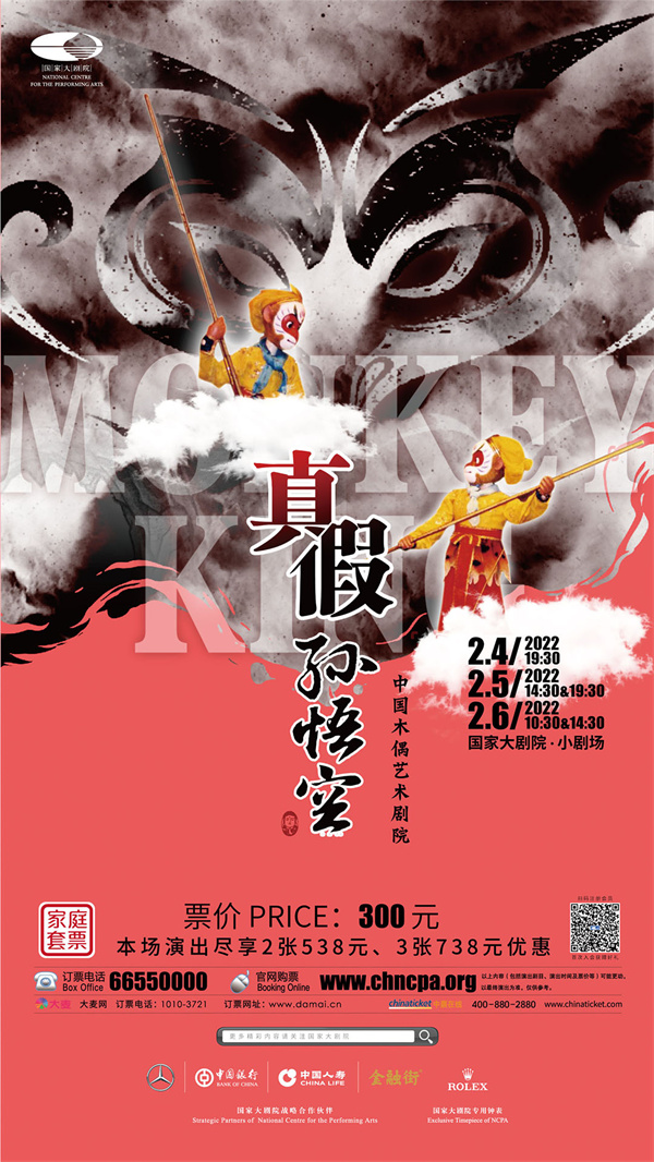 2月4日至2月6日,中國木偶藝術劇院即將帶來一部大型神話木偶劇《真假孫悟空》。劇中不僅有上天入海的情景變換、齊天大圣的七十二般變化、真假孫悟空的對決,更有婀娜多姿的龍女翩翩起舞、亦真亦幻的海底世界,既有熱烈的武戲場面,也不乏富有藝術美感的群舞表演。中國木偶藝術劇院的表演藝術家們以精湛的傳統杖頭木偶表演技法,通過藝術加工,展現了傳統木偶藝術神奇的魅力。
