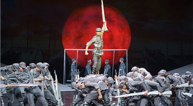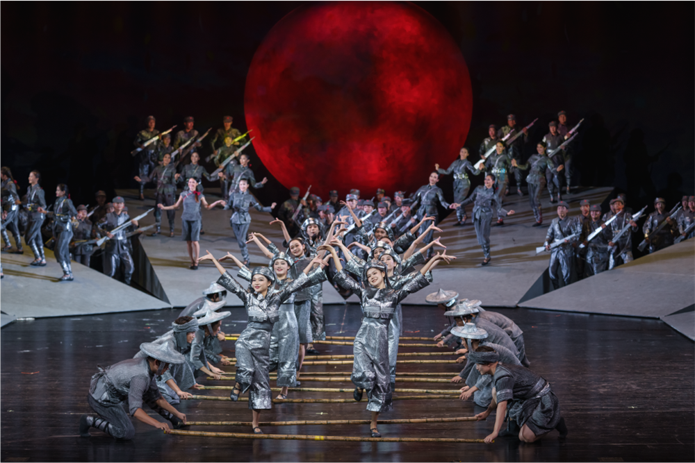 此次《解放海南島》作為“相約北京”國際藝術節的壓軸之作進京展演,以國家一級導演鄧林為首的主創人員攜140名舞蹈新生力量,在有限時間內反復打磨,以“木船打軍艦”的革命精神,全力再現音樂舞蹈史詩《解放海南島》的輝煌和藝術魅力。作品集音樂舞蹈、歌唱表演于一體,以打破三面臺的創舉凸顯海戰場景之開闊。