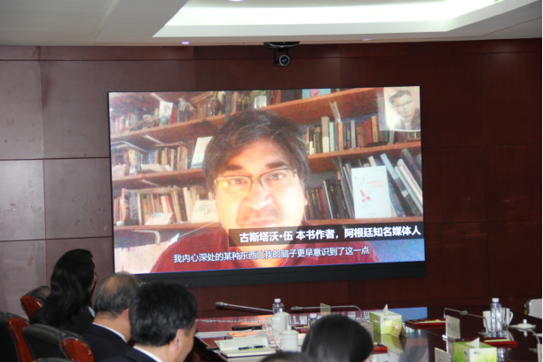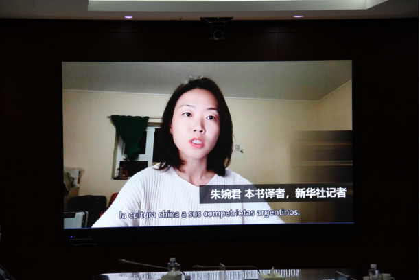 本書作者、阿根廷知名媒體人古斯塔沃·伍,阿根廷生產發展部中國事務協調員圣地亞哥·布斯泰洛,本書譯者、新華社記者朱婉君,拉丁美洲社會科學理事會出版中心主任費爾南達·潘平通過視頻進行發言。