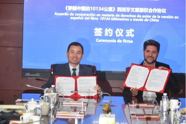 阿根廷仟雨出版社社長吉列爾莫·布拉沃出席活動,并與朝華出版社社長汪濤簽署《穿越中國的10134公里》西班牙文版版權合作協議。