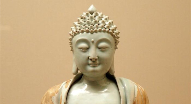 3月9日拍攝的受贈文物——元代“景德鎮窯青白釉佛像”。
