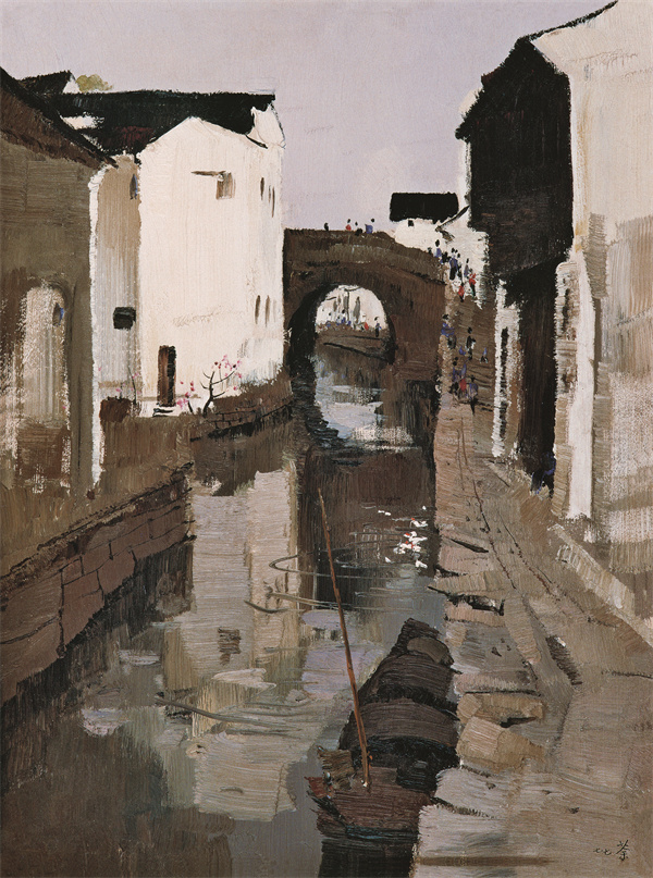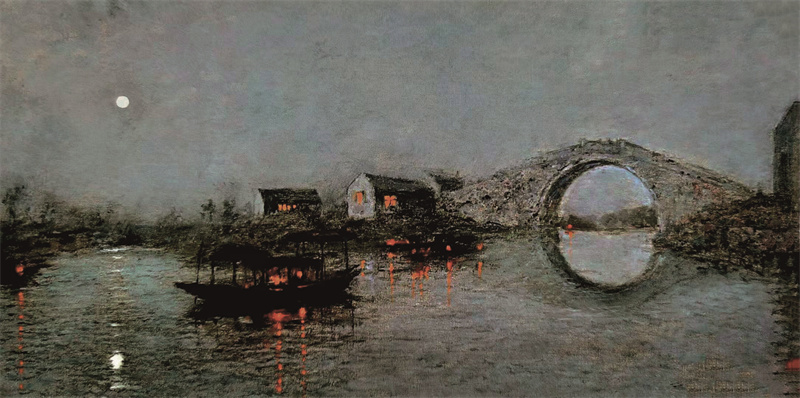 顏文樑《重泊楓橋》布面油畫 24cmx49cm 1980 中國美術館藏