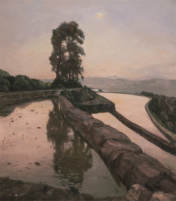 張祖英《梯田戀歌系列——薄暮初上》布面油畫160cmx130cm 2020