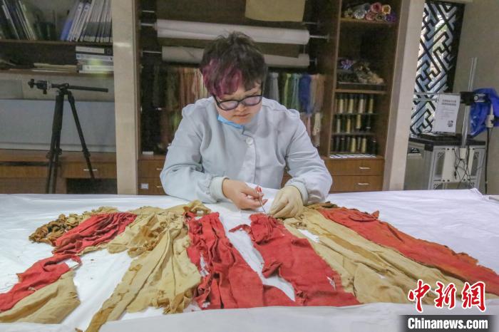 近日,中新網記者見到了這位“文物醫生”,她主要司職紡織品文物修復。一間不大的工作室內,滿是她修復文物時所用的材料、工具和設備。數十種鑷子和毛刷等小工具,還有幾十種絲線和布料,她都能清楚地區分其特性和用途。