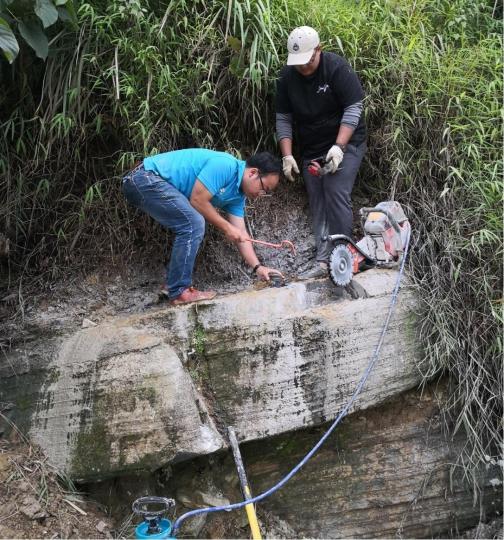 野外考察人員在利用電鋸等工具對化石及其圍巖進行處理?!№n鳳祿供圖