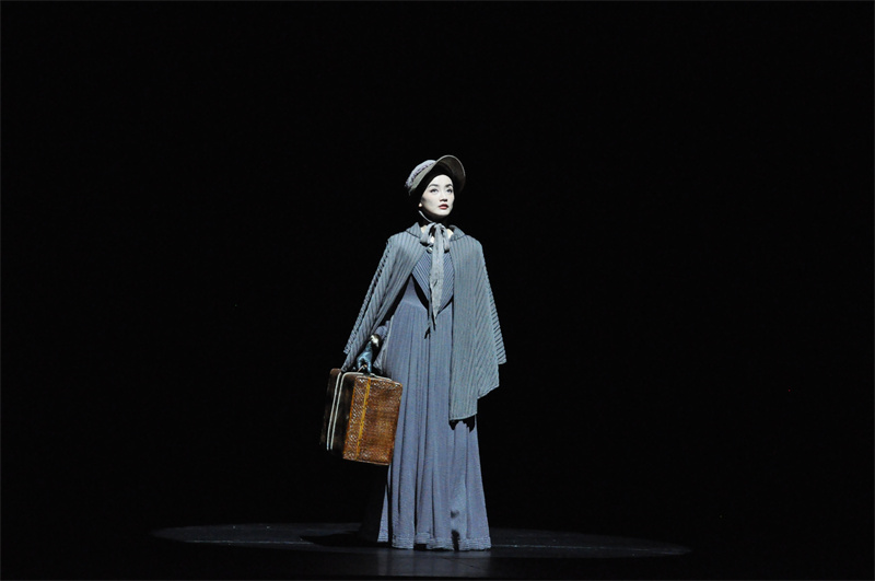 4月11日晚,身著一身灰色長裙的朱杰默默走上舞臺,輕聲彈奏起鋼琴旋律,充滿故事感的樂聲伴隨緩緩旋轉的舞臺,開啟了一段流傳了百余年的愛情經典。緩緩旋轉的舞臺簡潔凝重,巧妙變化出莊園、荒野和鄉村小屋,總體彌漫著維多利亞時代的氛圍,形成對主人公性格的有力補充。朱杰飾演的簡·愛清峻堅韌,在理智、冷靜的外表下又有著熱情而敏感的自我。無論是與羅切斯特的初次見面,還是面對酒會中貴族小姐的嘲諷,她都端凝如畫、不卑不亢。這也是朱杰繼2010年后闊別十二年再次飾演簡·愛,被王曉鷹導演贊為“閨門旦”型演員的她將這些年的積累沉淀融入進對人物的理解,并成熟地展現在舞臺上。